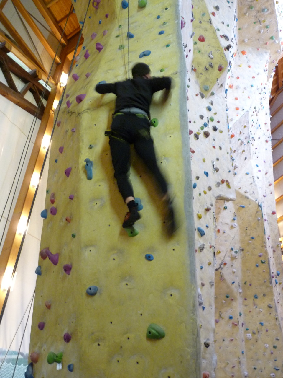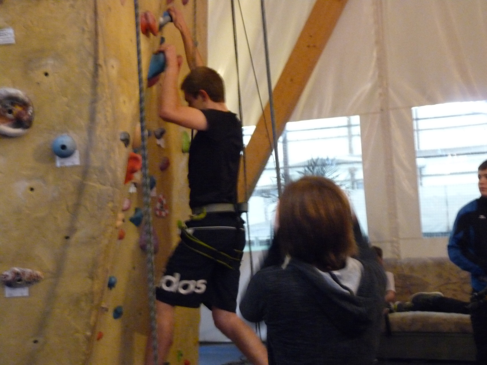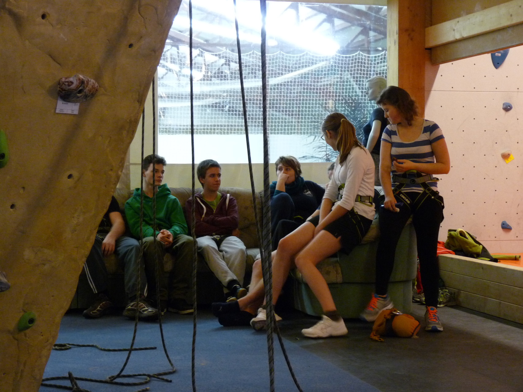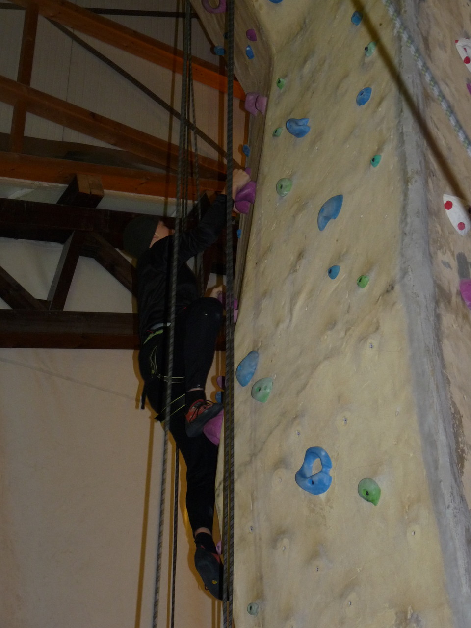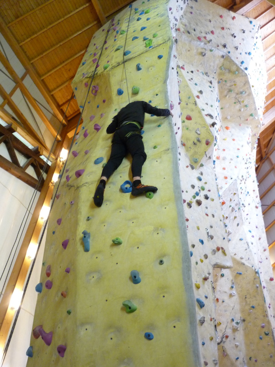 Nach dem Mittagessen fuhren sie zur Kletterhalle. Somit hatten sie trotz Regen keine Einschränkungen. Nach einer kurzen Einweisung in die Kletterausrüstung konnten die ersten schon damit anfangen den „Gipfel“ zu erklimmen. Damit es niemanden langweilig wurde, gab es unterschiedliche Schwierigkeitsgrade. Gegen spätem Nachmittag verließ die Jugend die Halle und fuhr zurück zum Flugplatz. Ein wenig später trafen auch die Pizzen ein. Den Abend ließen sie dann gemütlich im Jugendraum ausklingen. Ein durchaus gelungener Tag!
