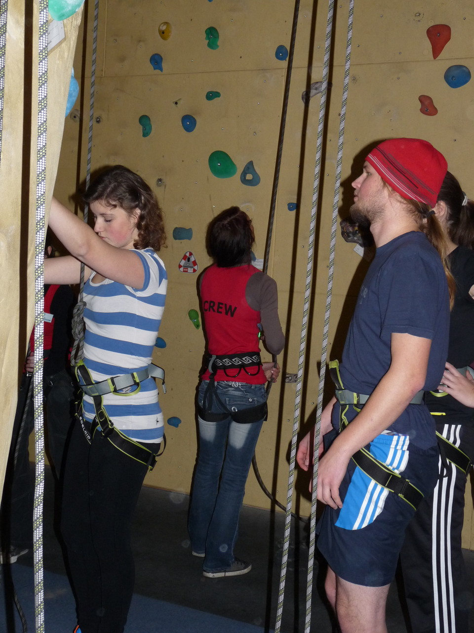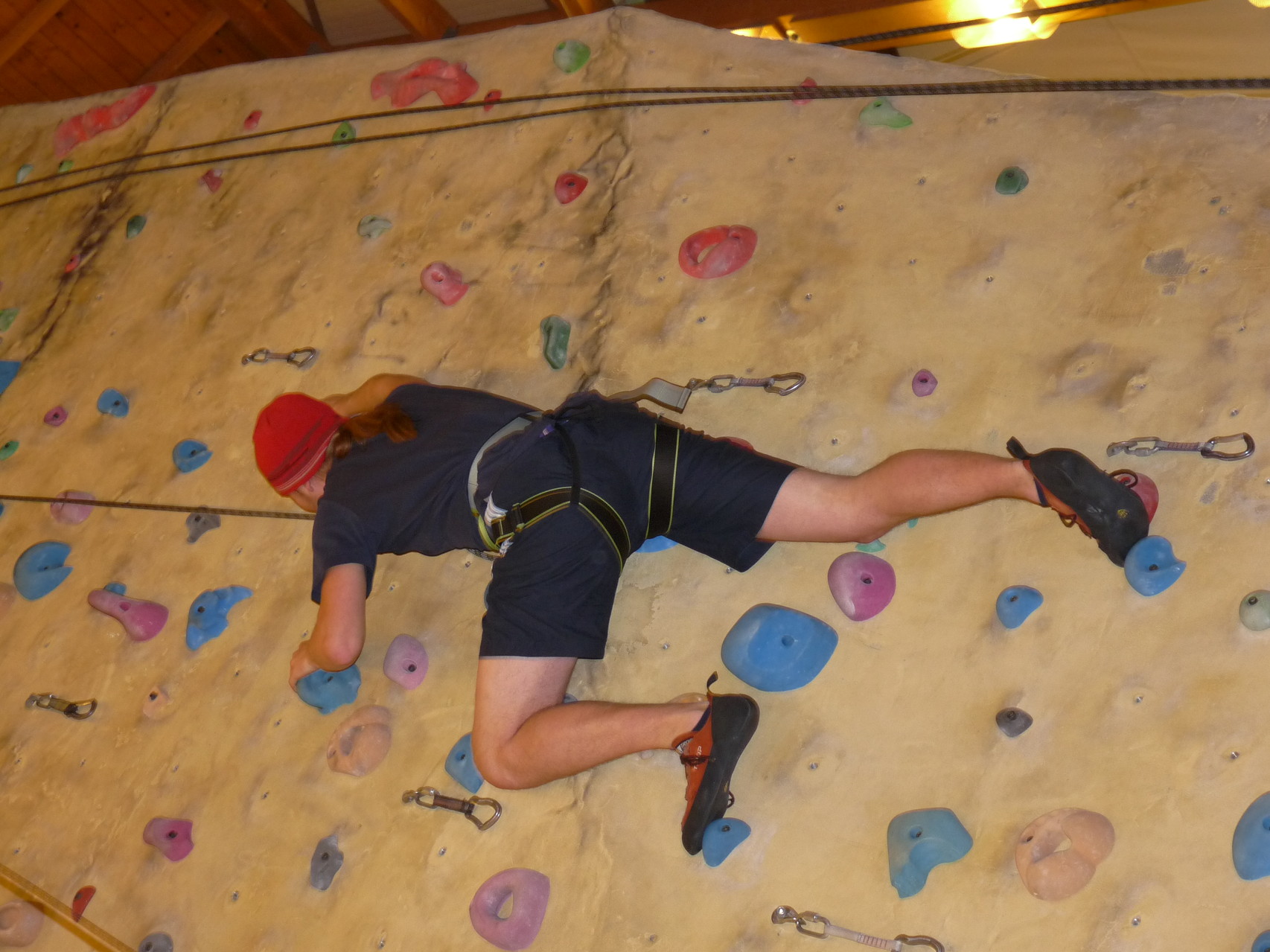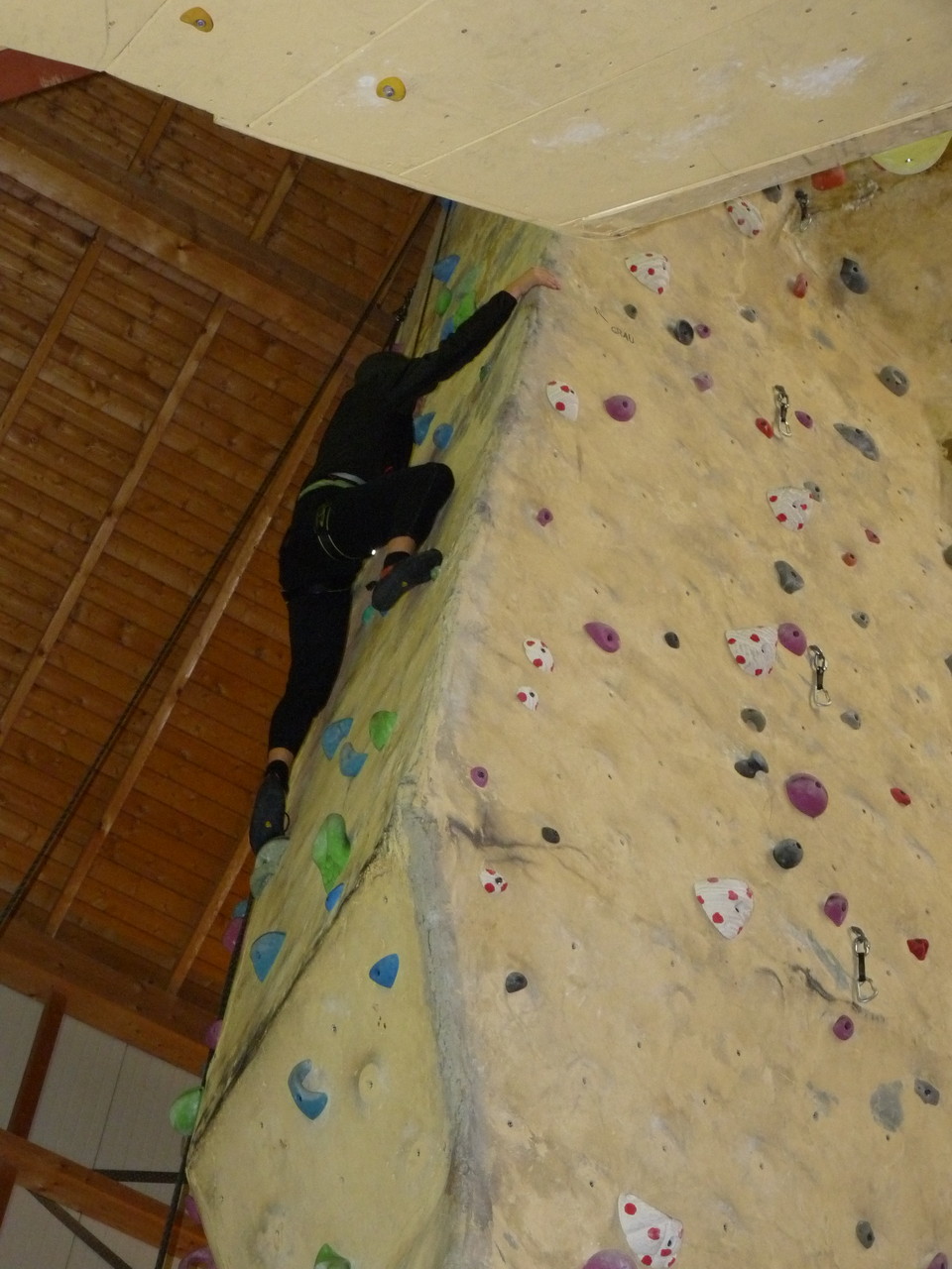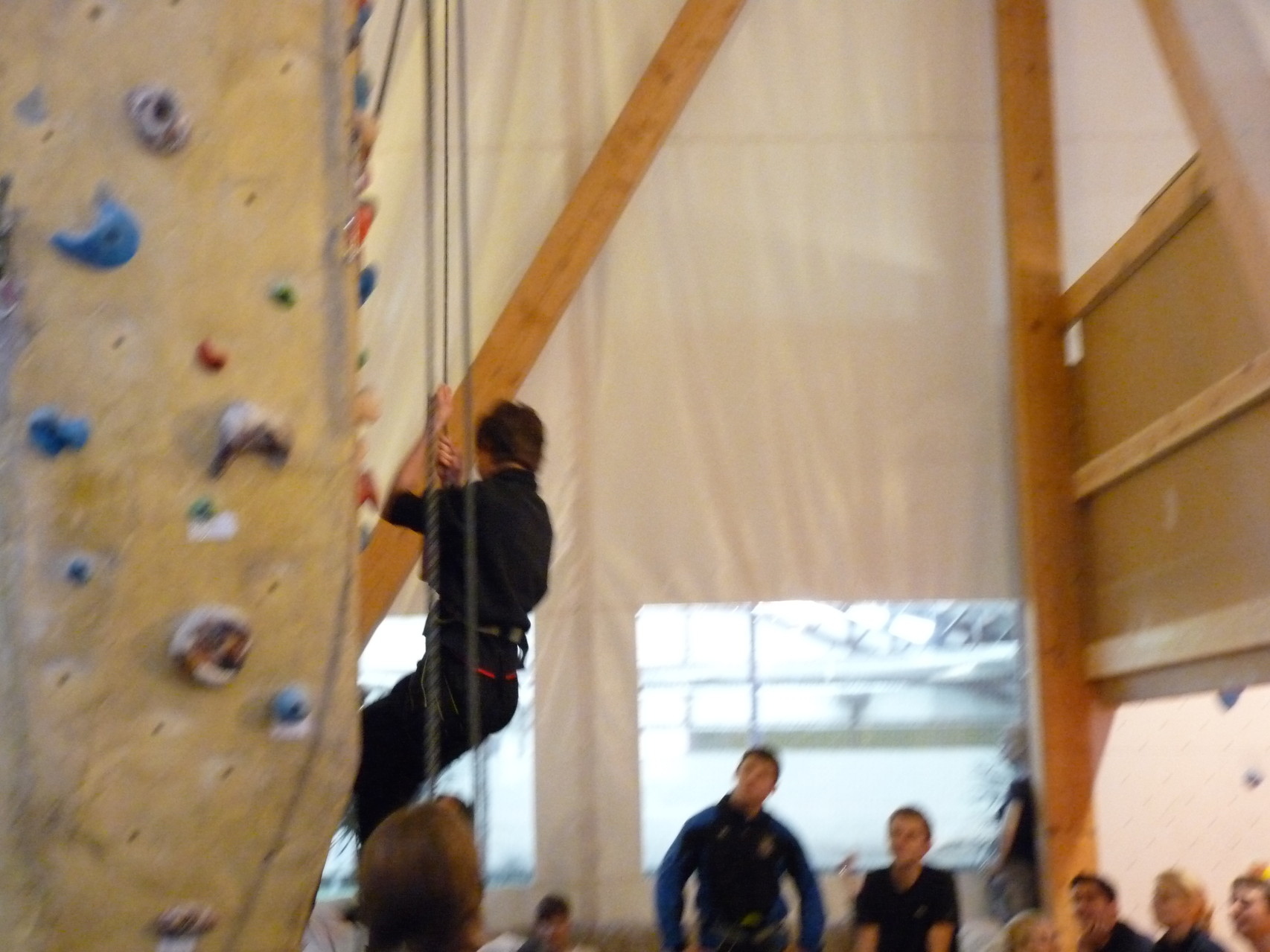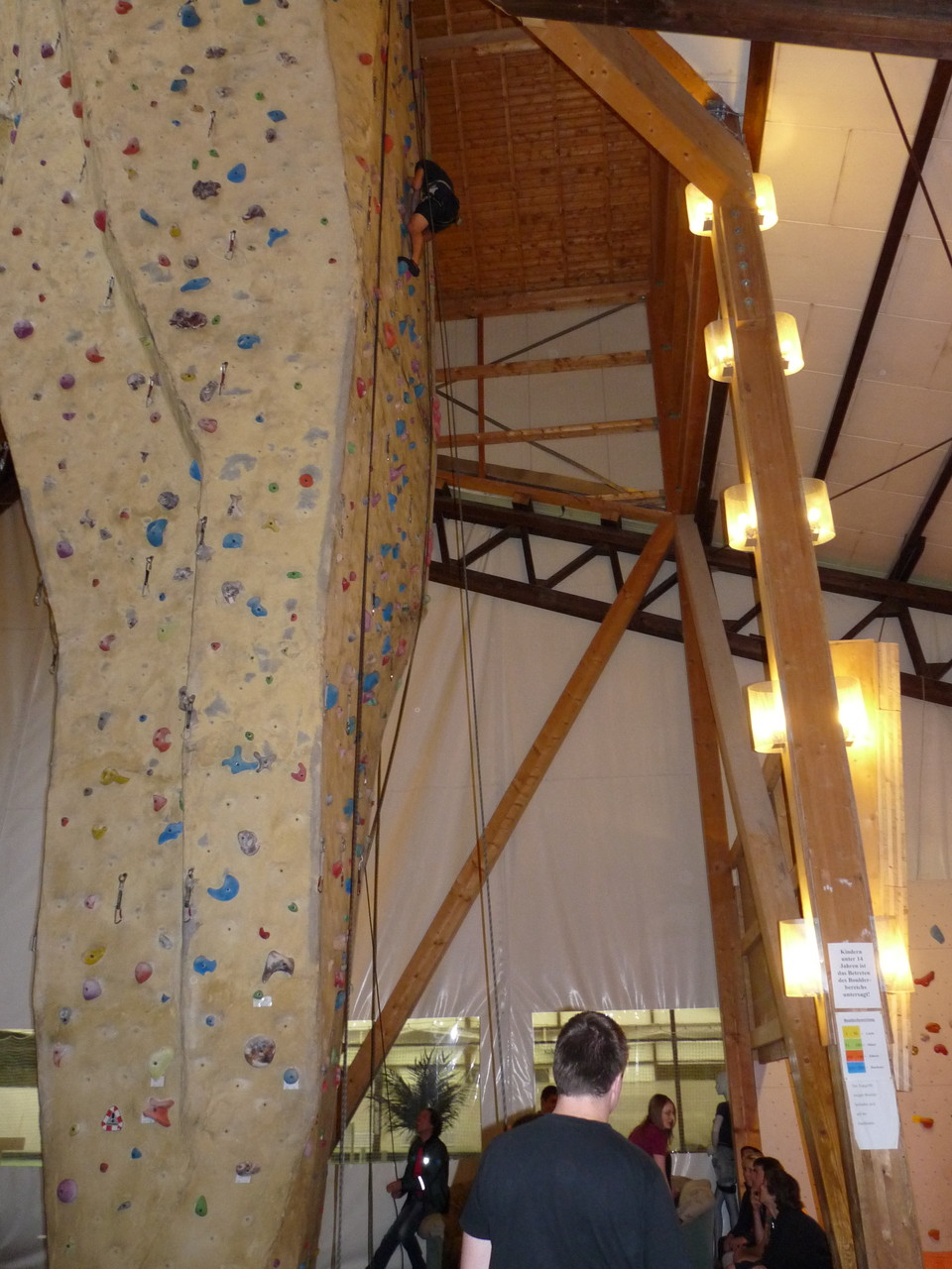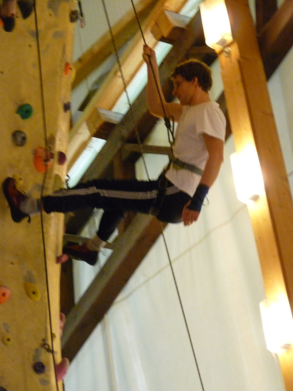 Nach dem Mittagessen fuhren sie zur Kletterhalle. Somit hatten sie trotz Regen keine Einschränkungen. Nach einer kurzen Einweisung in die Kletterausrüstung konnten die ersten schon damit anfangen den „Gipfel“ zu erklimmen. Damit es niemanden langweilig wurde, gab es unterschiedliche Schwierigkeitsgrade. Gegen spätem Nachmittag verließ die Jugend die Halle und fuhr zurück zum Flugplatz. Ein wenig später trafen auch die Pizzen ein. Den Abend ließen sie dann gemütlich im Jugendraum ausklingen. Ein durchaus gelungener Tag!