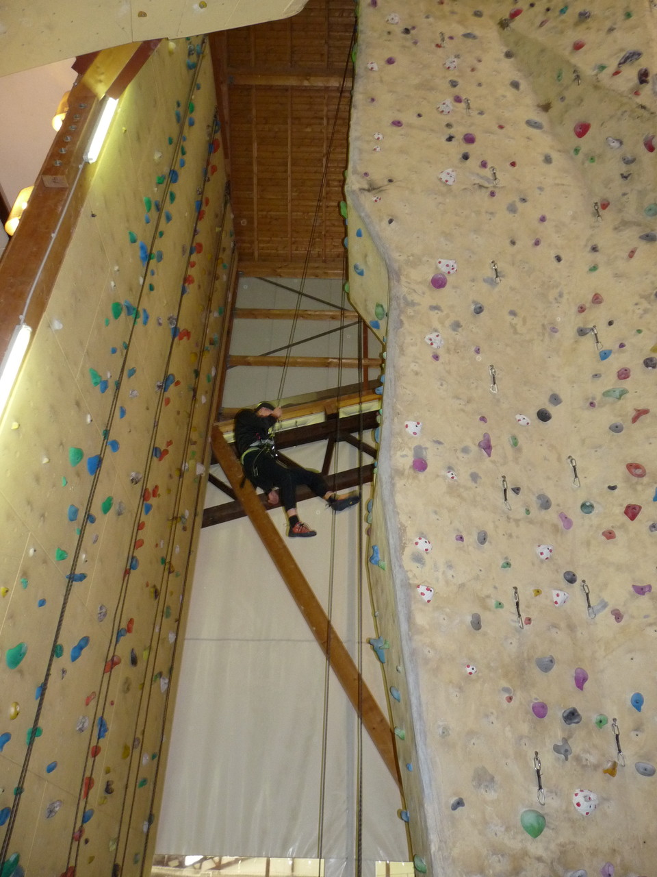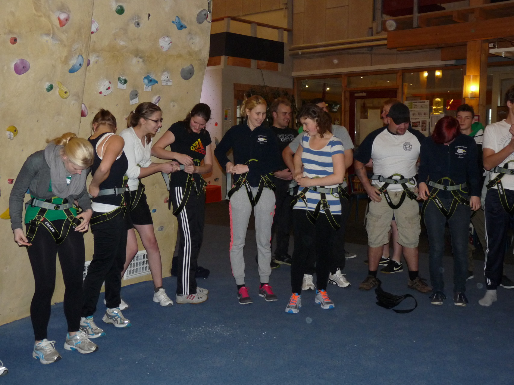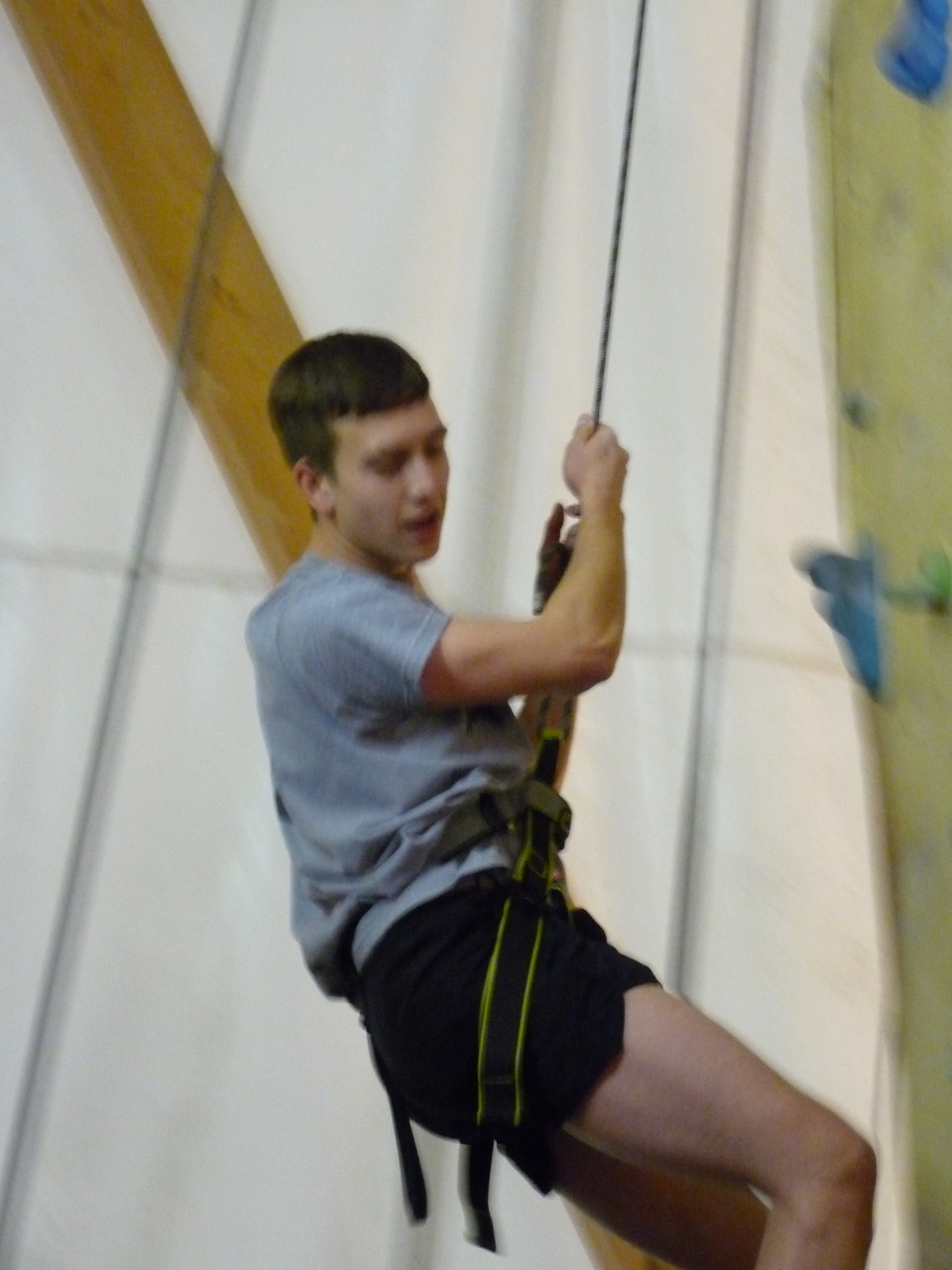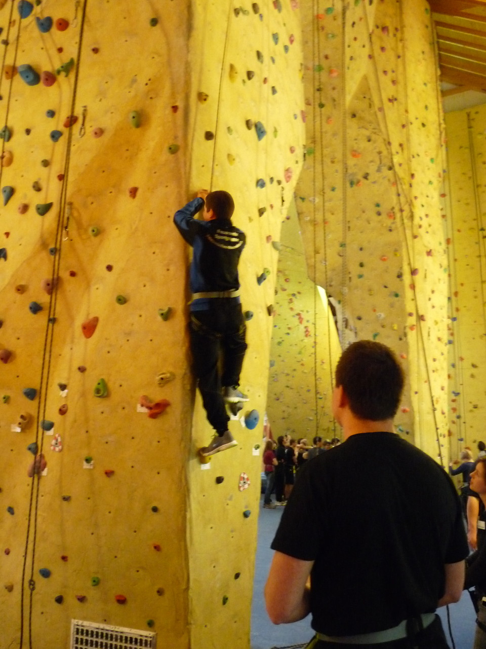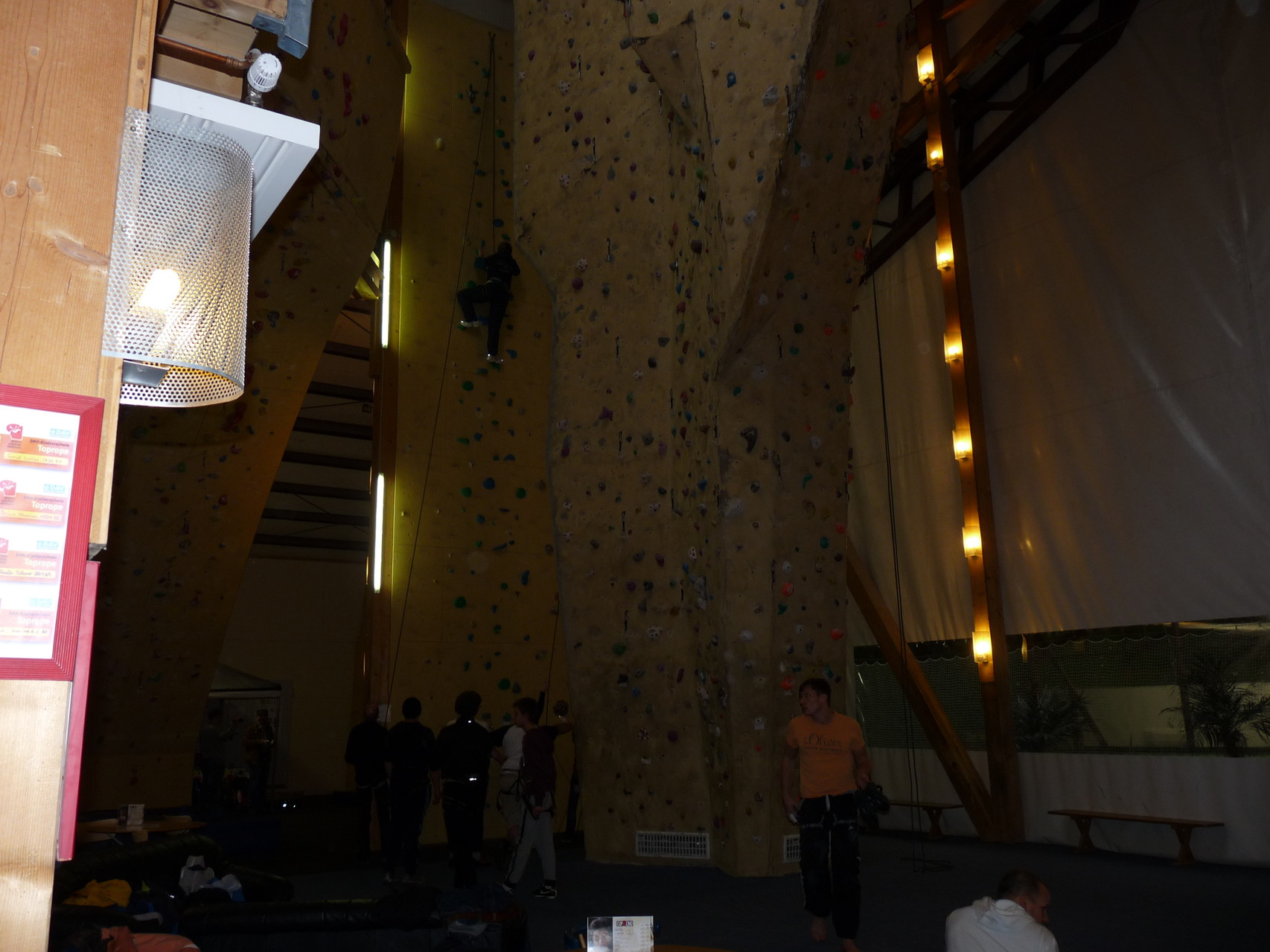 Nach dem Mittagessen fuhren sie zur Kletterhalle. Somit hatten sie trotz Regen keine Einschränkungen. Nach einer kurzen Einweisung in die Kletterausrüstung konnten die ersten schon damit anfangen den „Gipfel“ zu erklimmen. Damit es niemanden langweilig wurde, gab es unterschiedliche Schwierigkeitsgrade. Gegen spätem Nachmittag verließ die Jugend die Halle und fuhr zurück zum Flugplatz. Ein wenig später trafen auch die Pizzen ein. Den Abend ließen sie dann gemütlich im Jugendraum ausklingen. Ein durchaus gelungener Tag!