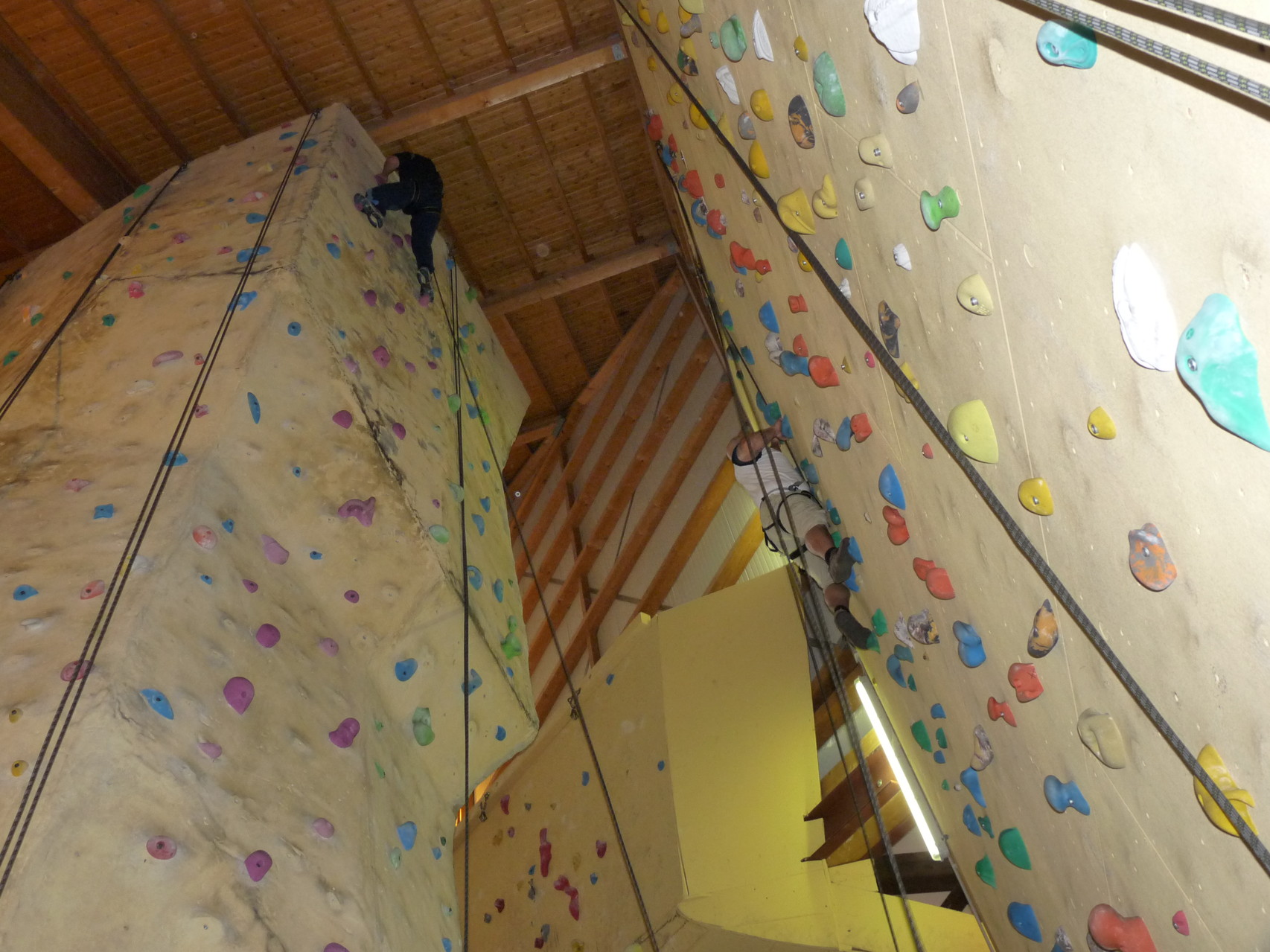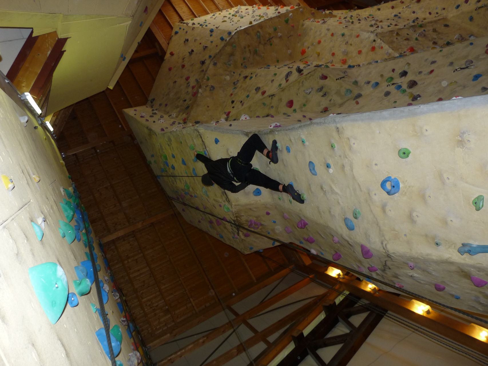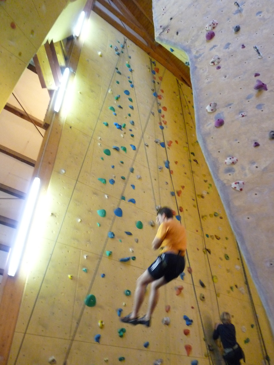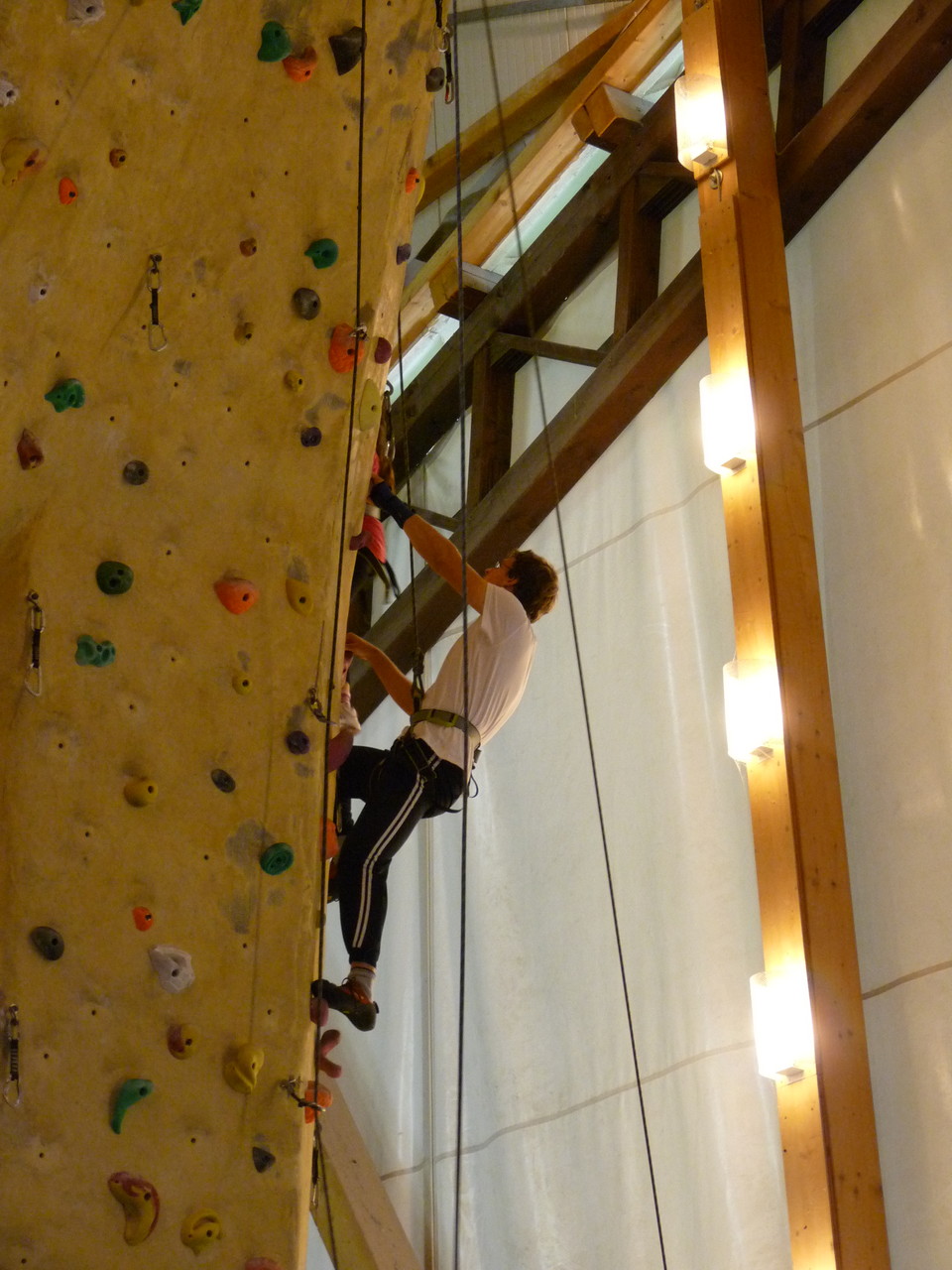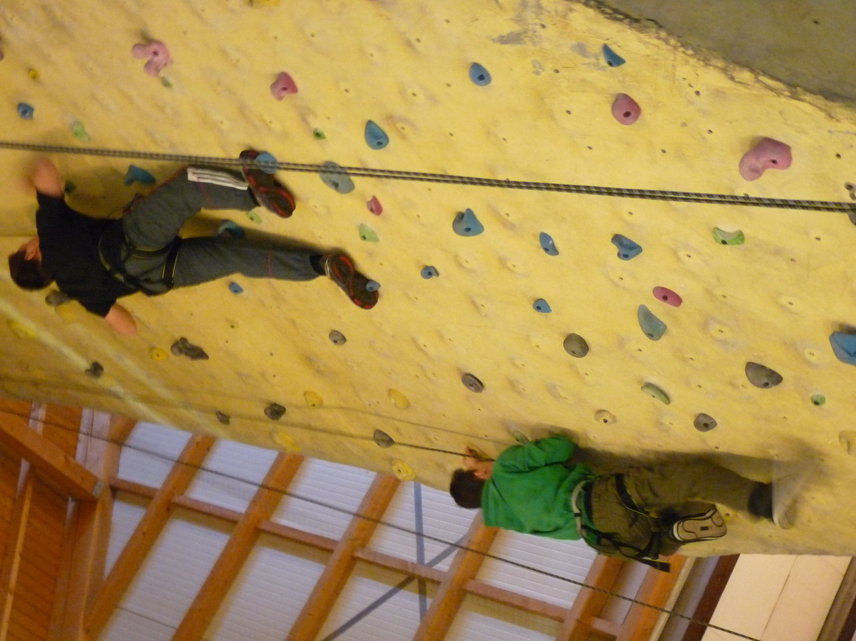 Nach dem Mittagessen fuhren sie zur Kletterhalle. Somit hatten sie trotz Regen keine Einschränkungen. Nach einer kurzen Einweisung in die Kletterausrüstung konnten die ersten schon damit anfangen den „Gipfel“ zu erklimmen. Damit es niemanden langweilig wurde, gab es unterschiedliche Schwierigkeitsgrade. Gegen spätem Nachmittag verließ die Jugend die Halle und fuhr zurück zum Flugplatz. Ein wenig später trafen auch die Pizzen ein. Den Abend ließen sie dann gemütlich im Jugendraum ausklingen. Ein durchaus gelungener Tag!