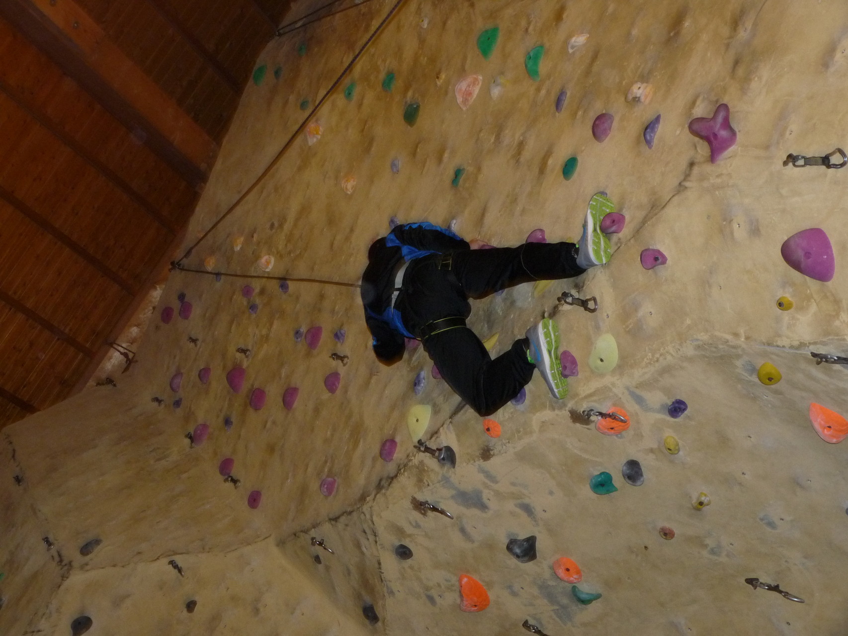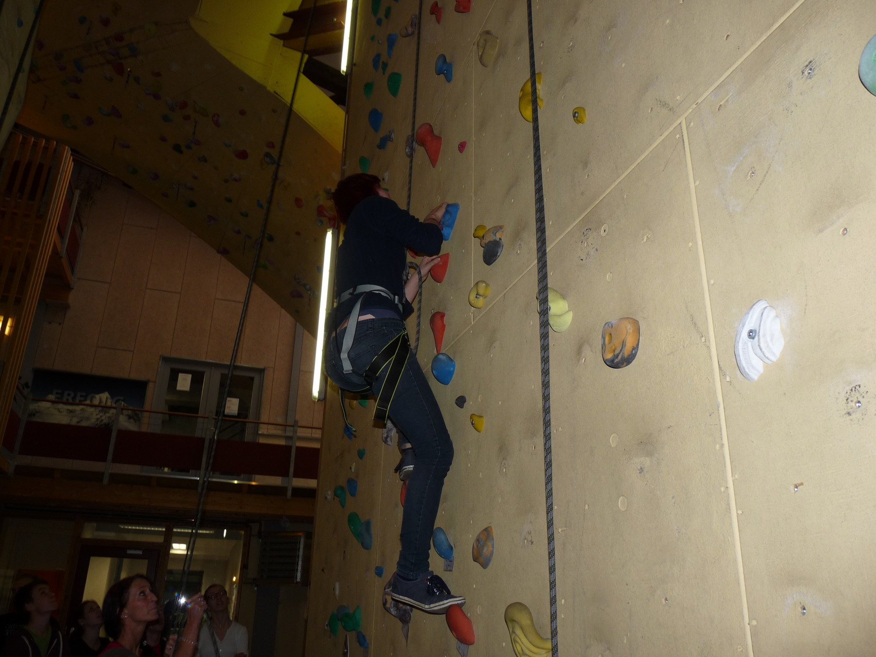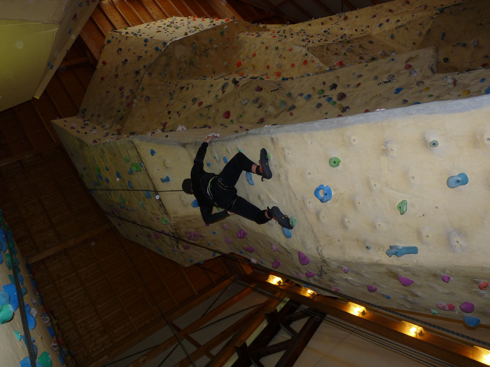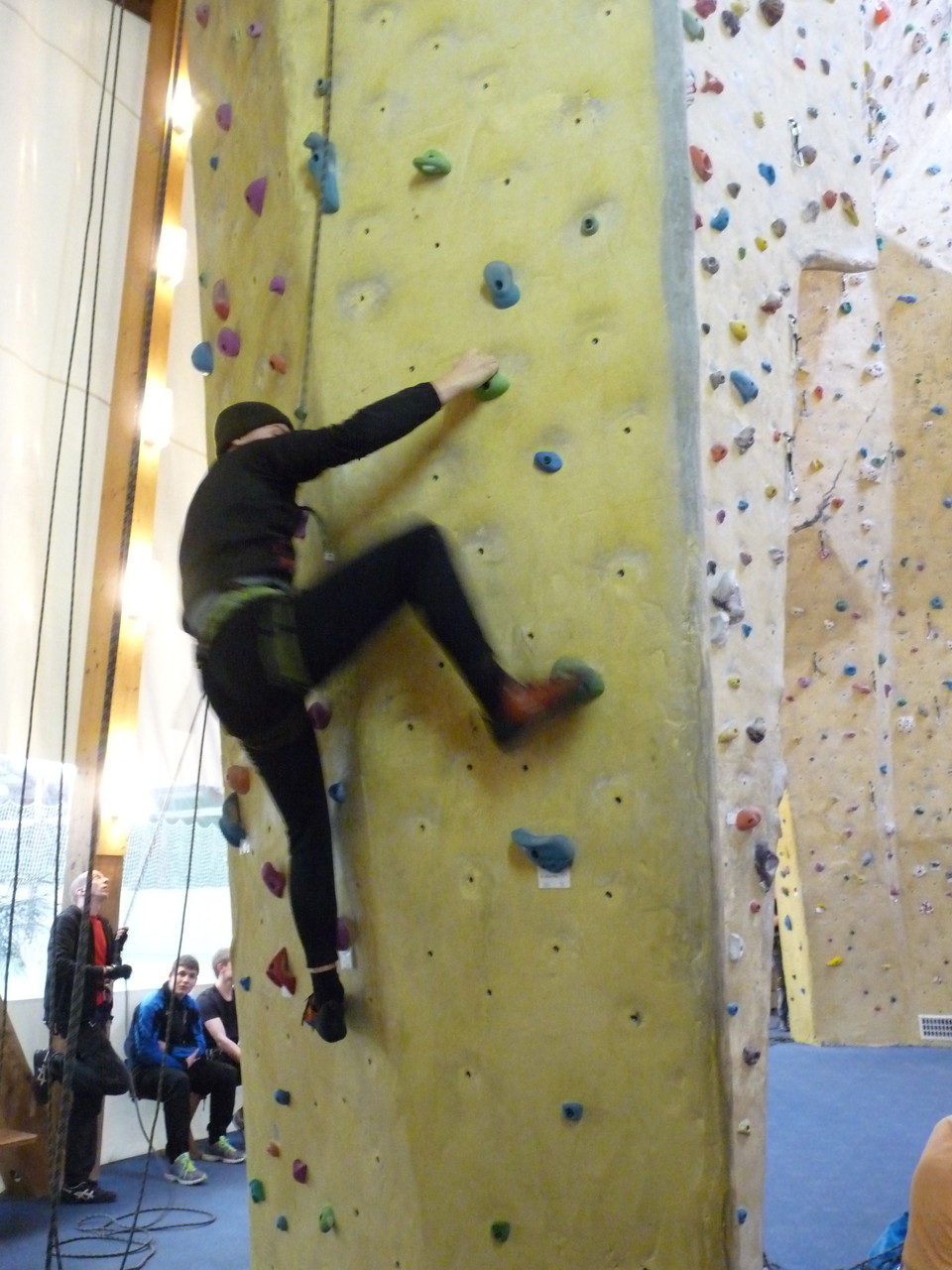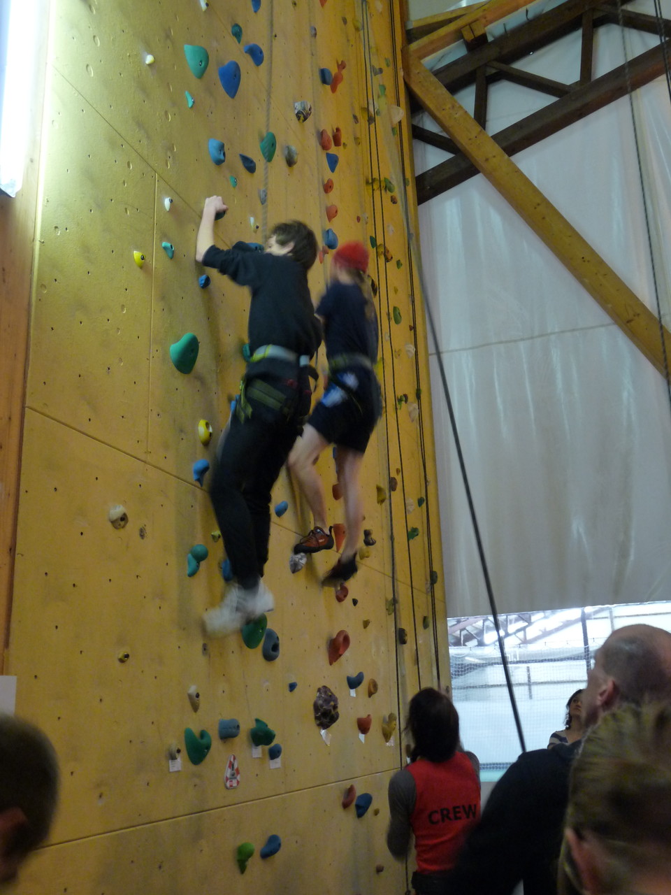 Nach dem Mittagessen fuhren sie zur Kletterhalle. Somit hatten sie trotz Regen keine Einschränkungen. Nach einer kurzen Einweisung in die Kletterausrüstung konnten die ersten schon damit anfangen den „Gipfel“ zu erklimmen. Damit es niemanden langweilig wurde, gab es unterschiedliche Schwierigkeitsgrade. Gegen spätem Nachmittag verließ die Jugend die Halle und fuhr zurück zum Flugplatz. Ein wenig später trafen auch die Pizzen ein. Den Abend ließen sie dann gemütlich im Jugendraum ausklingen. Ein durchaus gelungener Tag!