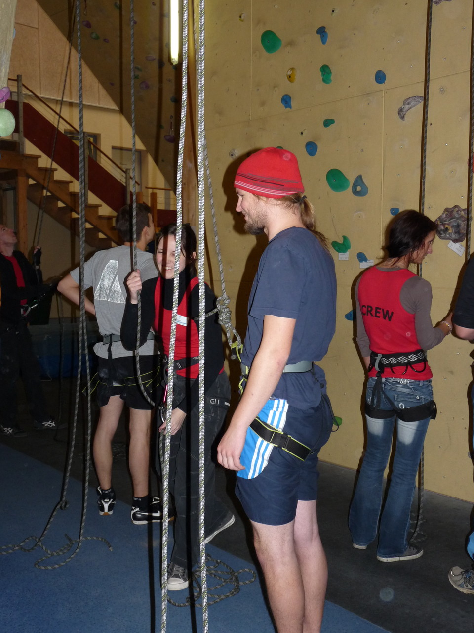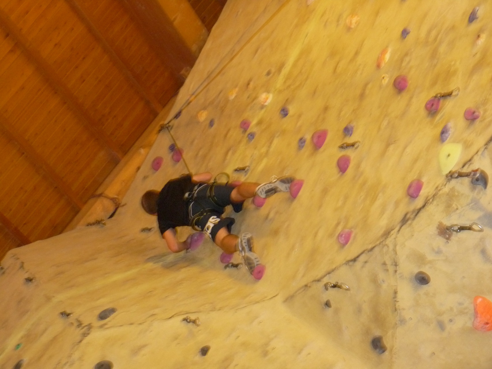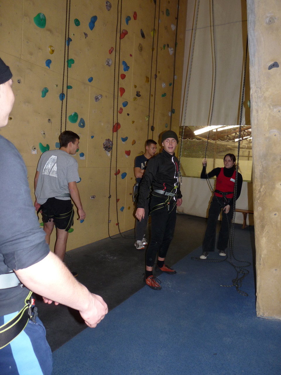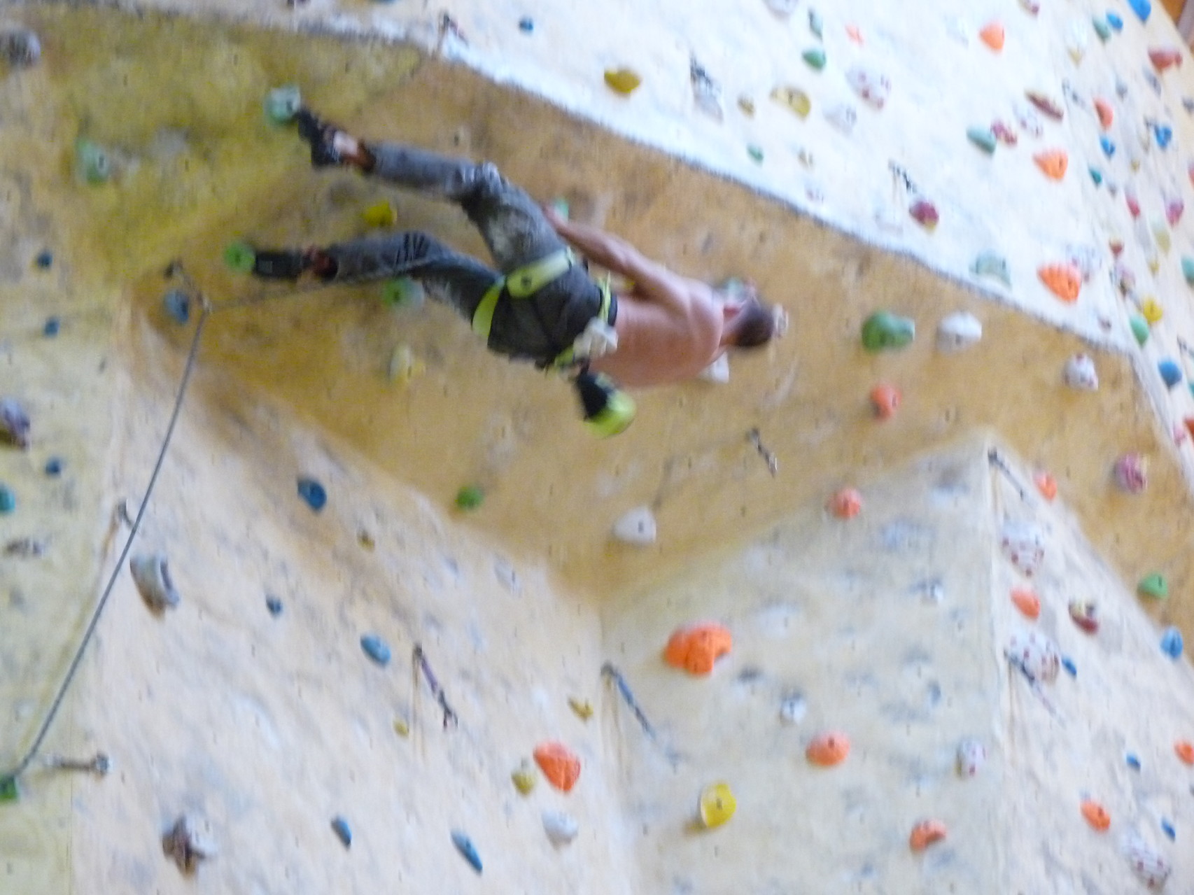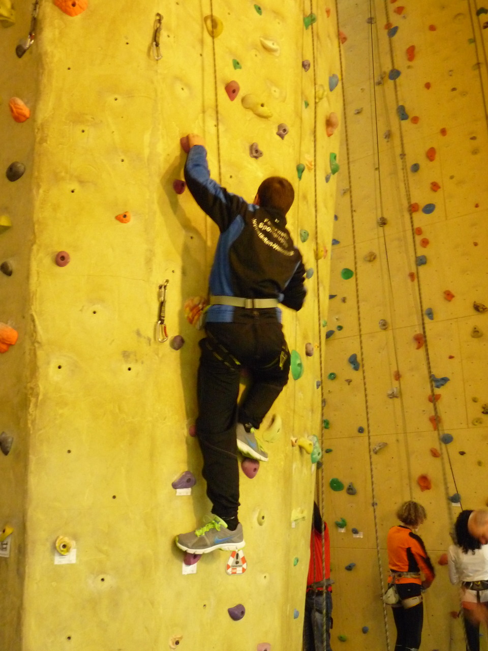 Nach dem Mittagessen fuhren sie zur Kletterhalle. Somit hatten sie trotz Regen keine Einschränkungen. Nach einer kurzen Einweisung in die Kletterausrüstung konnten die ersten schon damit anfangen den „Gipfel“ zu erklimmen. Damit es niemanden langweilig wurde, gab es unterschiedliche Schwierigkeitsgrade. Gegen spätem Nachmittag verließ die Jugend die Halle und fuhr zurück zum Flugplatz. Ein wenig später trafen auch die Pizzen ein. Den Abend ließen sie dann gemütlich im Jugendraum ausklingen. Ein durchaus gelungener Tag!