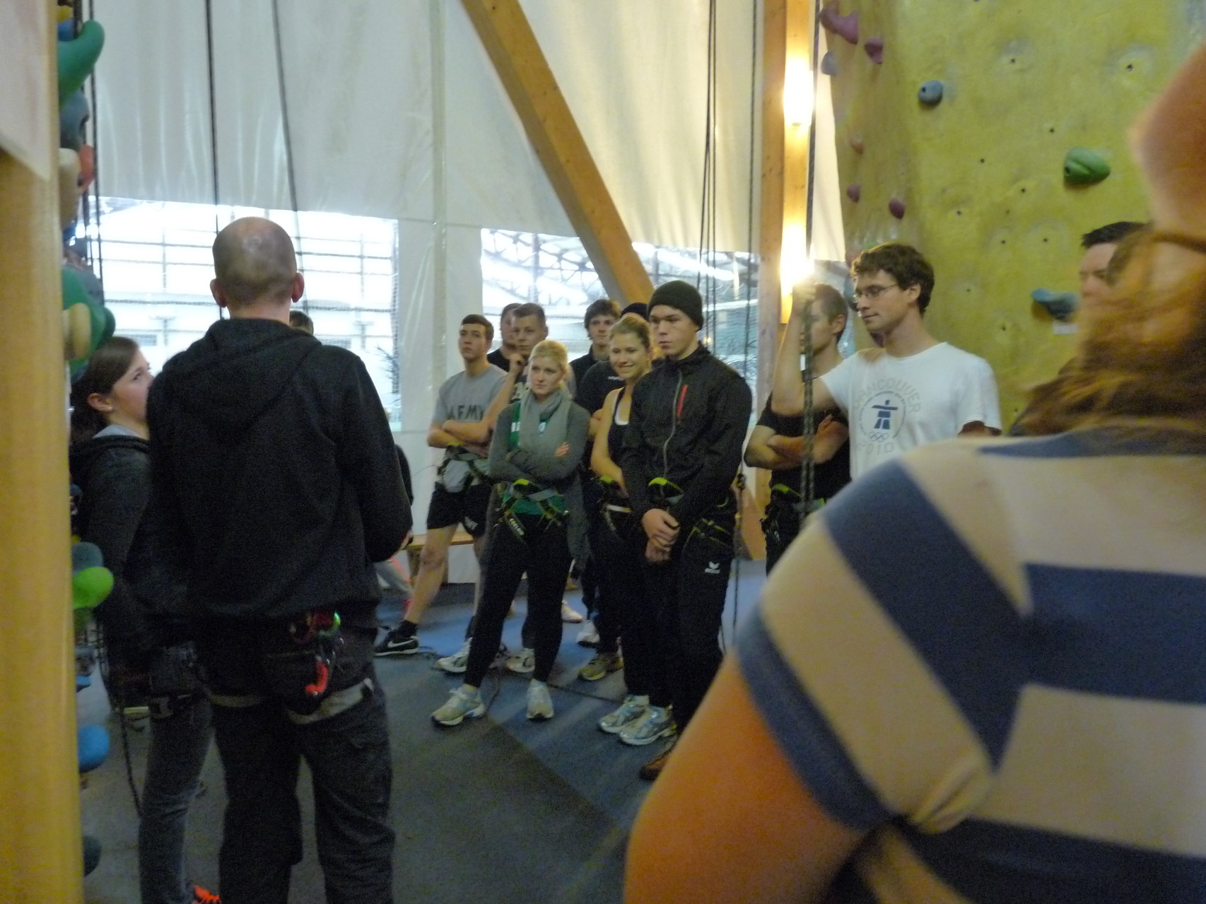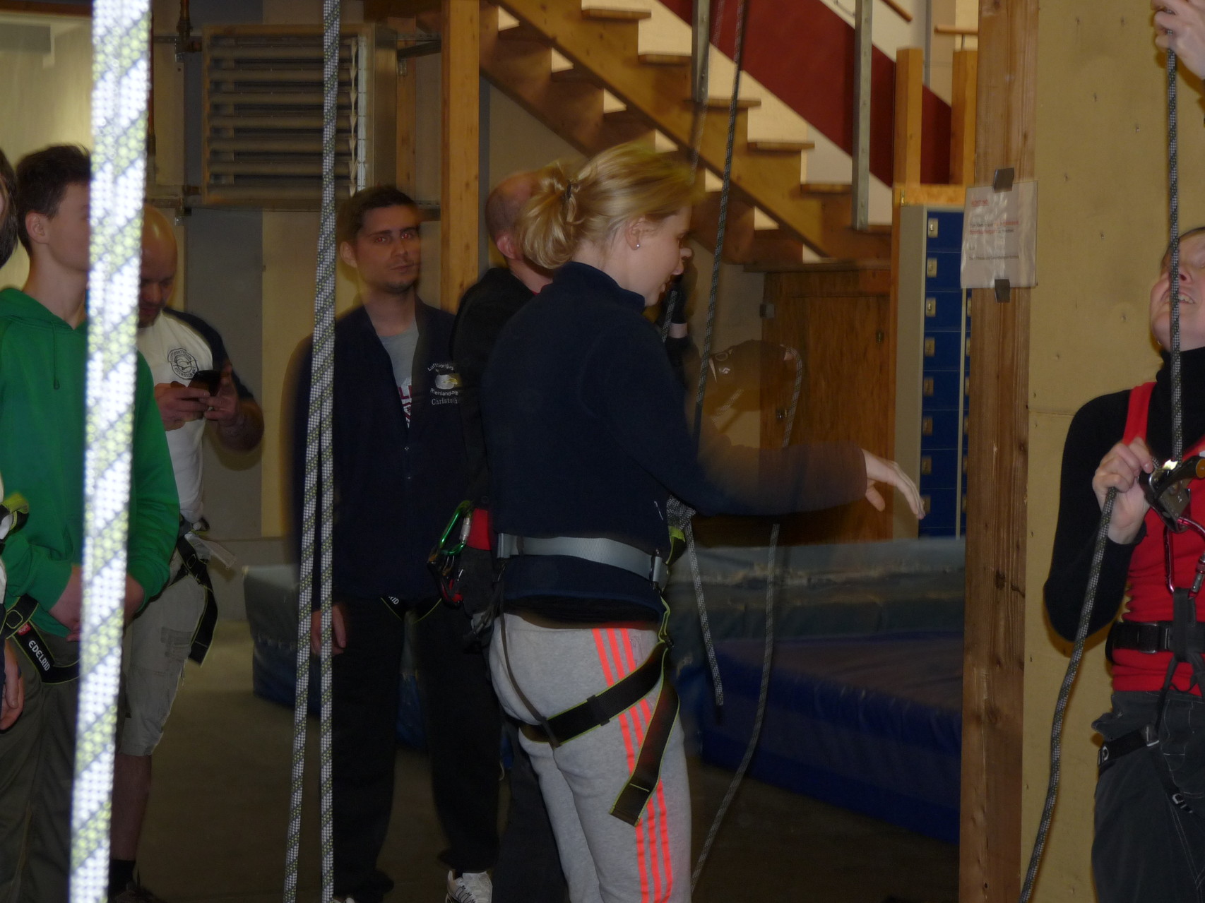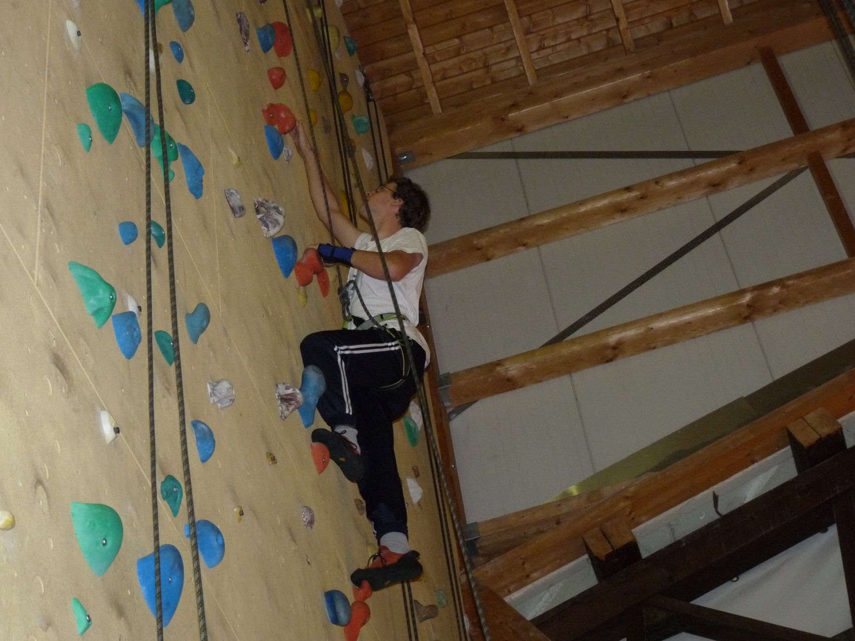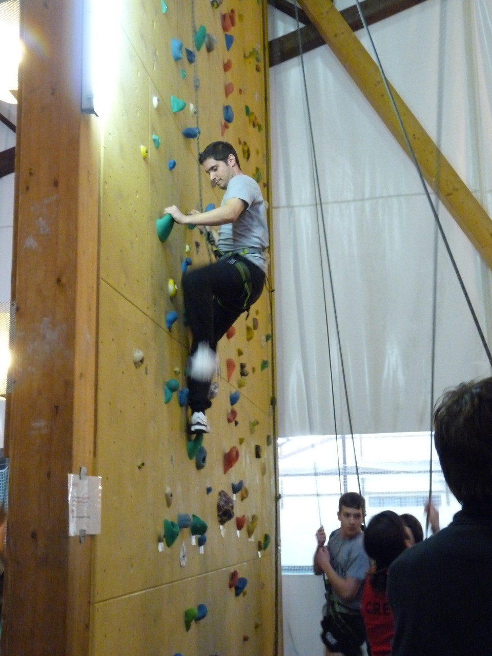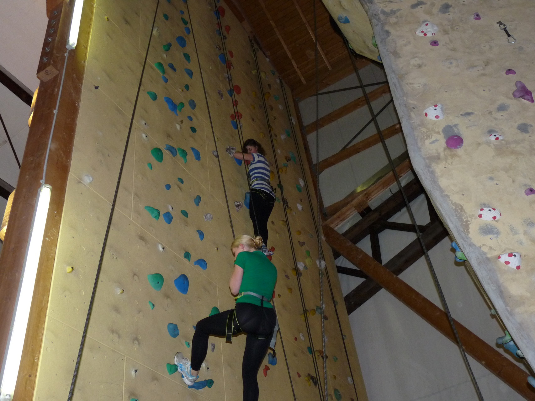 Nach dem Mittagessen fuhren sie zur Kletterhalle. Somit hatten sie trotz Regen keine Einschränkungen. Nach einer kurzen Einweisung in die Kletterausrüstung konnten die ersten schon damit anfangen den „Gipfel“ zu erklimmen. Damit es niemanden langweilig wurde, gab es unterschiedliche Schwierigkeitsgrade. Gegen spätem Nachmittag verließ die Jugend die Halle und fuhr zurück zum Flugplatz. Ein wenig später trafen auch die Pizzen ein. Den Abend ließen sie dann gemütlich im Jugendraum ausklingen. Ein durchaus gelungener Tag!