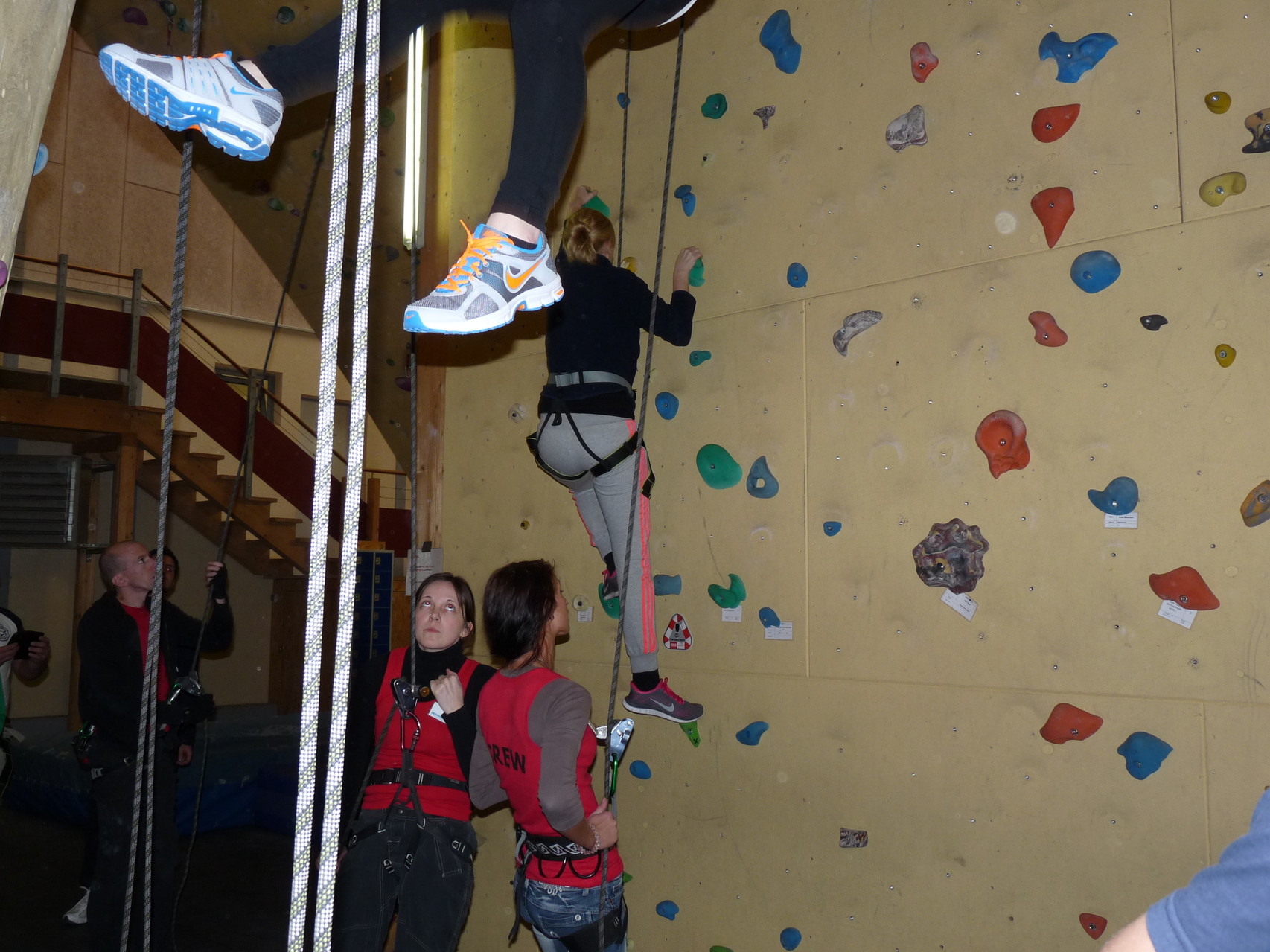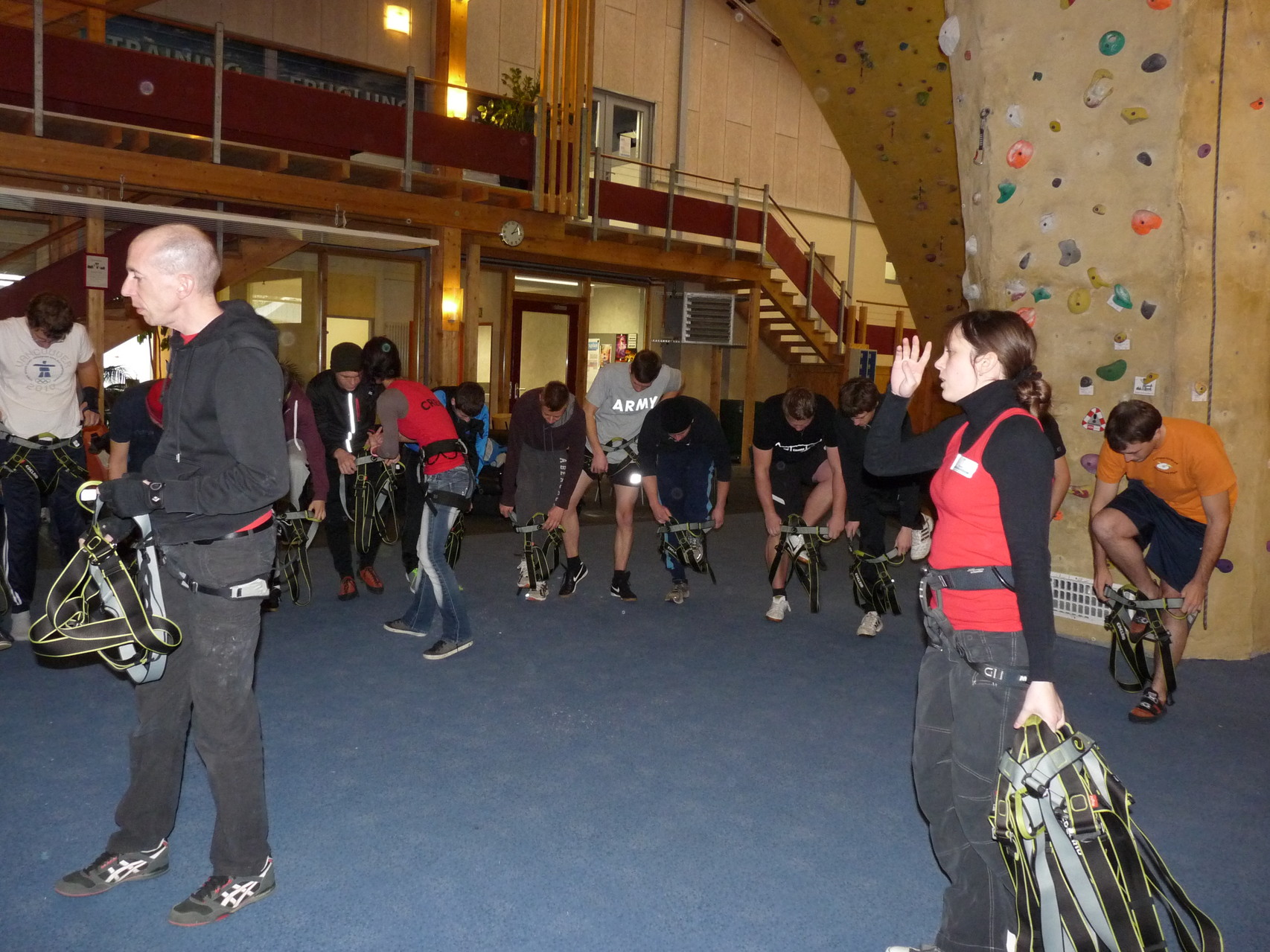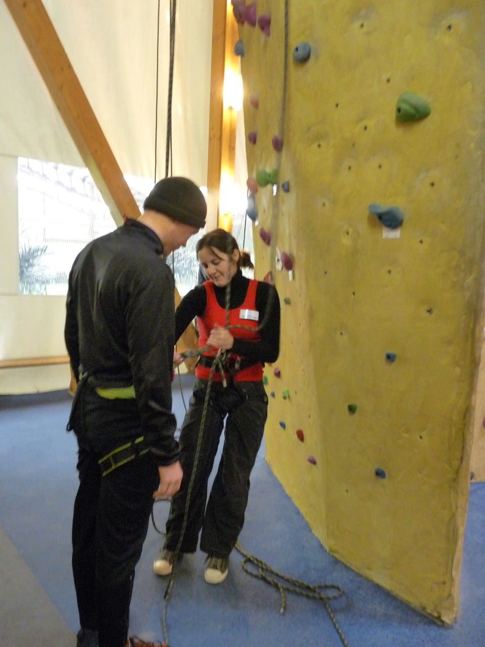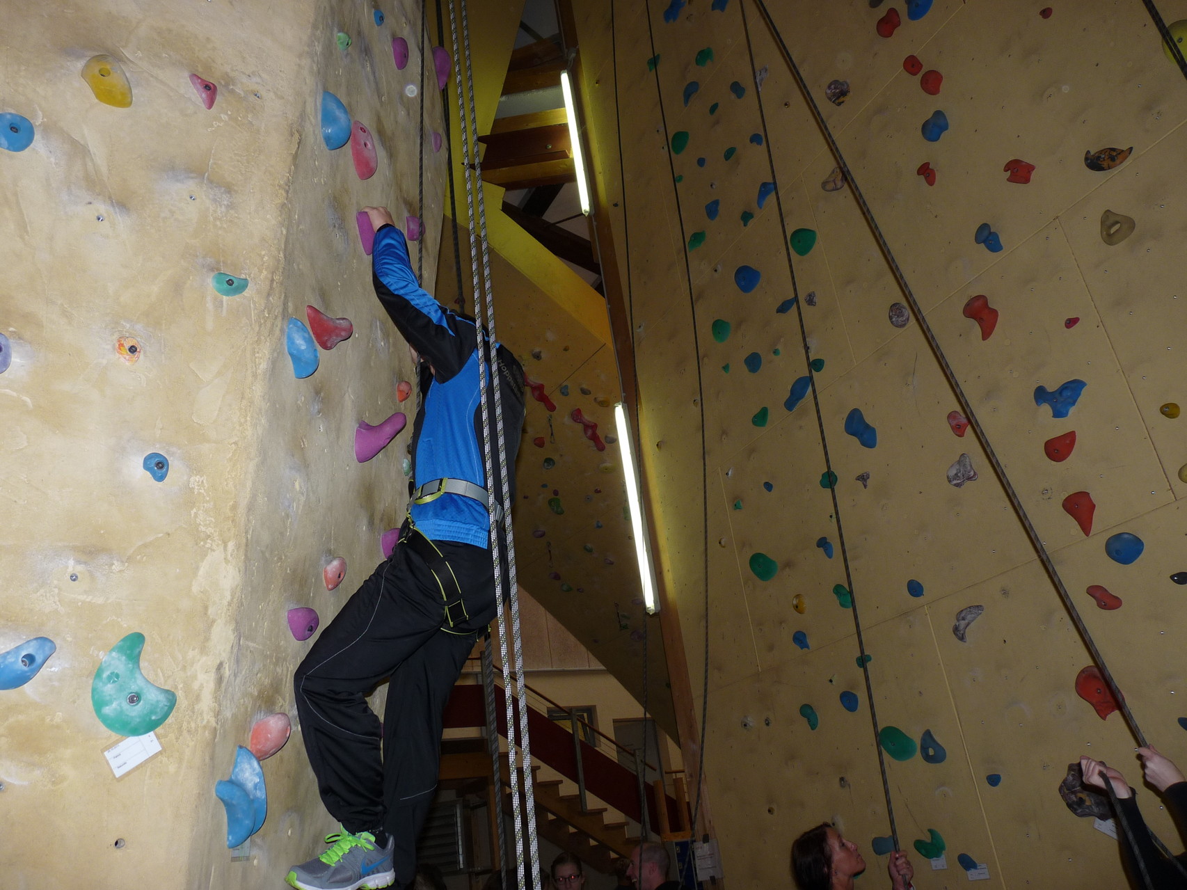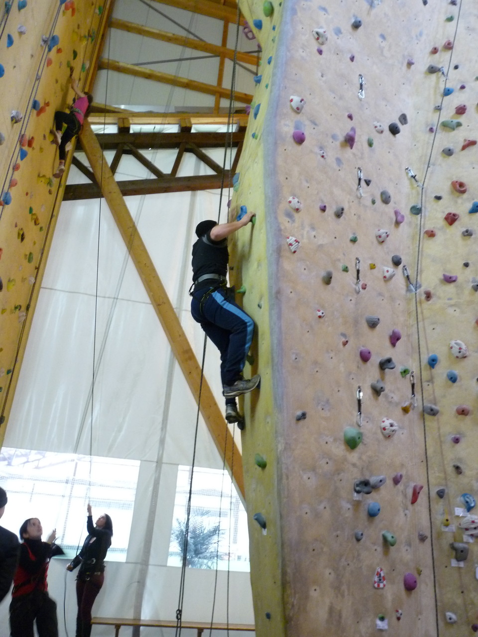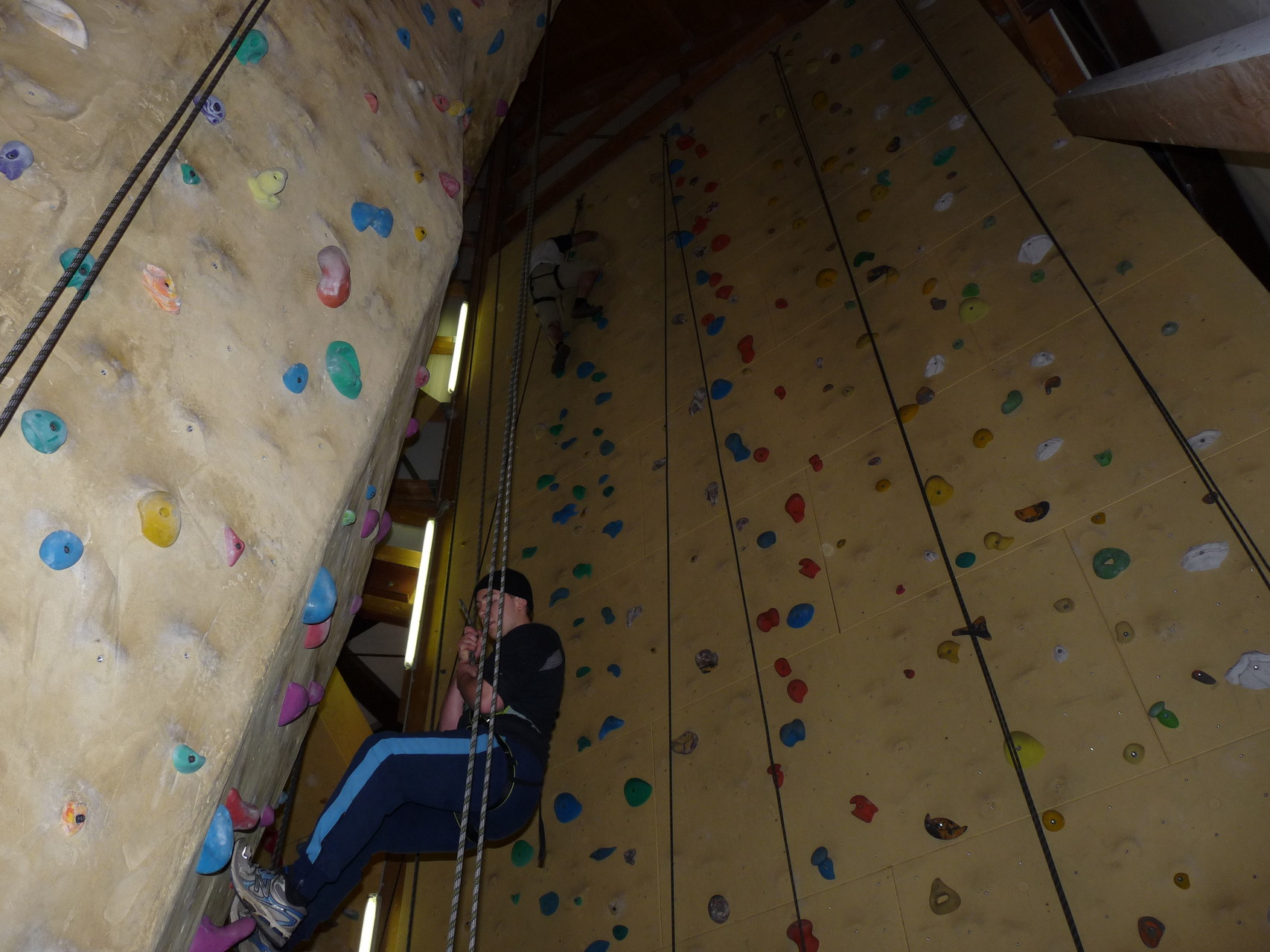 Nach dem Mittagessen fuhren sie zur Kletterhalle. Somit hatten sie trotz Regen keine Einschränkungen. Nach einer kurzen Einweisung in die Kletterausrüstung konnten die ersten schon damit anfangen den „Gipfel“ zu erklimmen. Damit es niemanden langweilig wurde, gab es unterschiedliche Schwierigkeitsgrade. Gegen spätem Nachmittag verließ die Jugend die Halle und fuhr zurück zum Flugplatz. Ein wenig später trafen auch die Pizzen ein. Den Abend ließen sie dann gemütlich im Jugendraum ausklingen. Ein durchaus gelungener Tag!