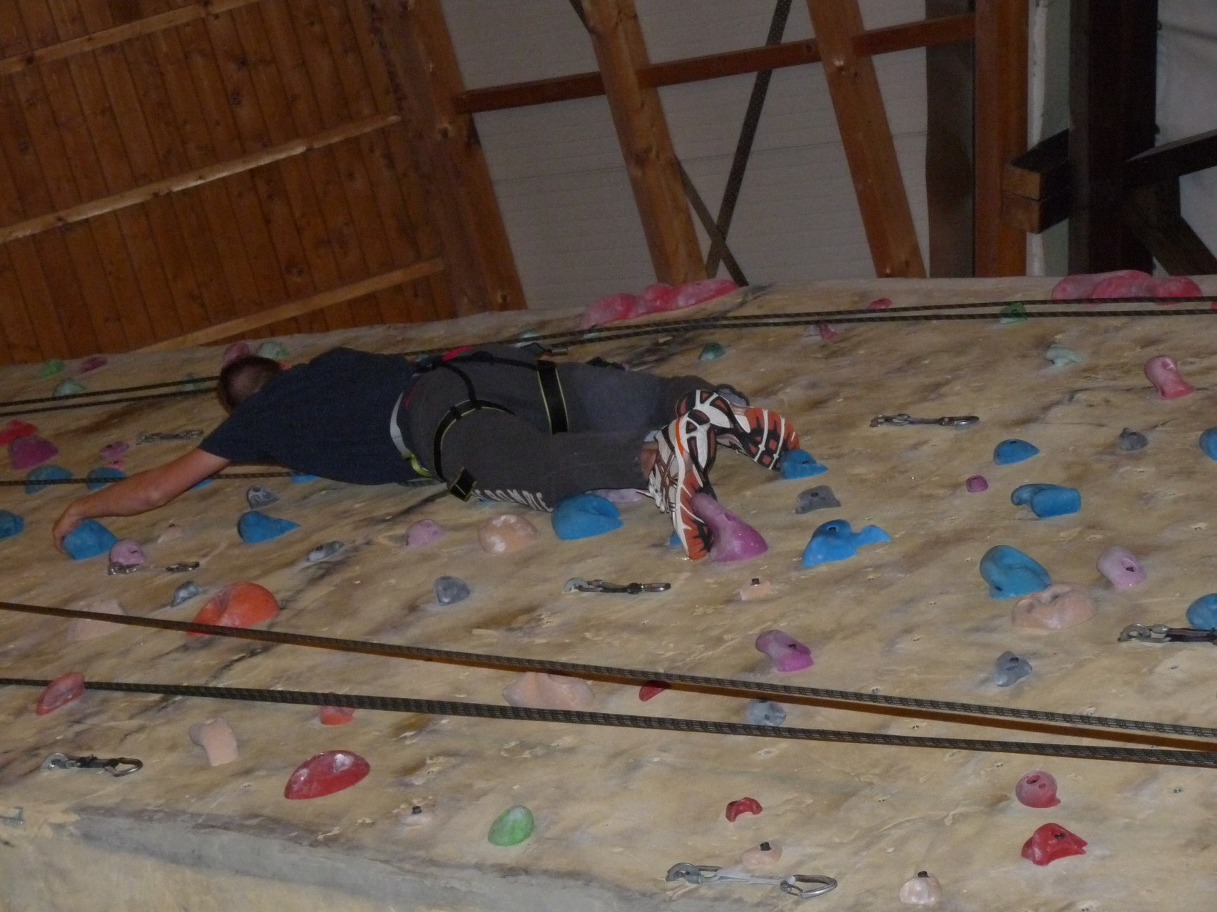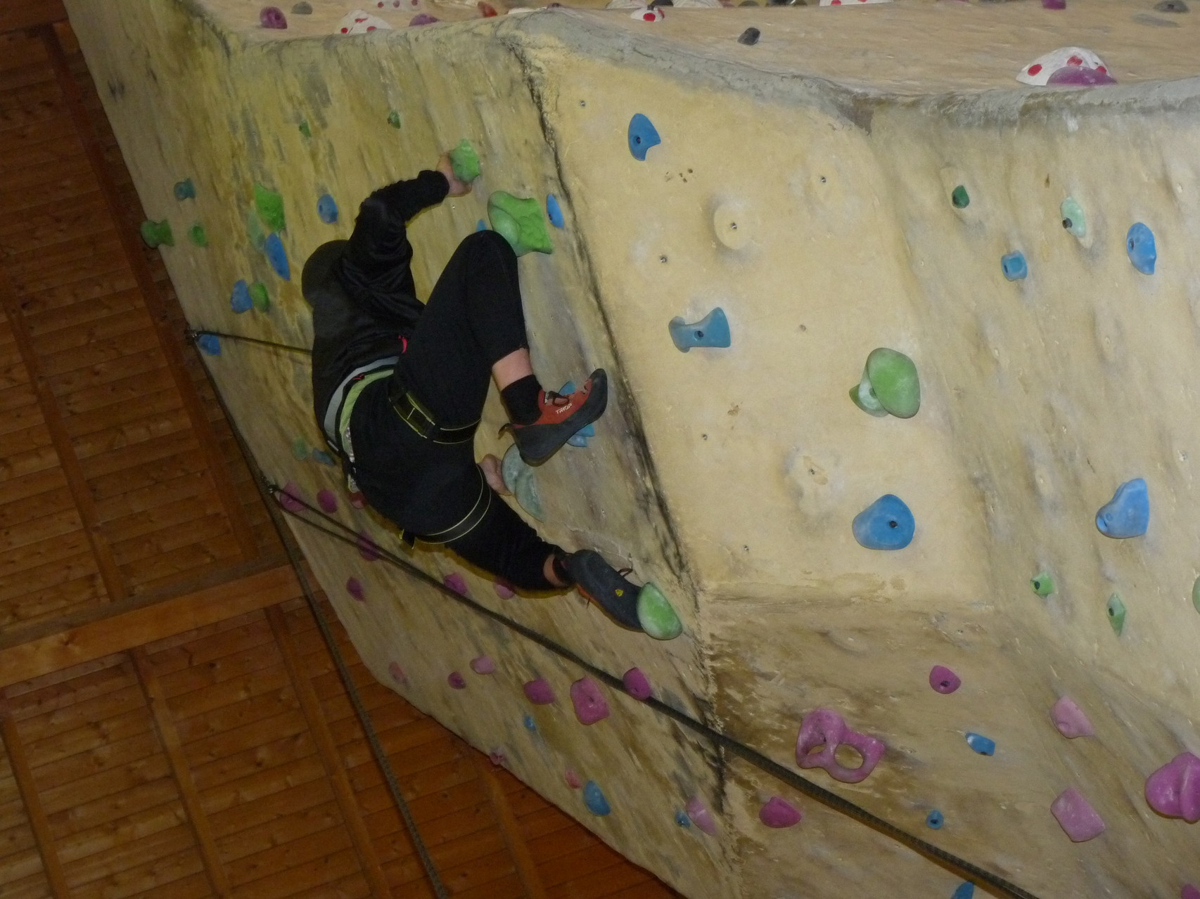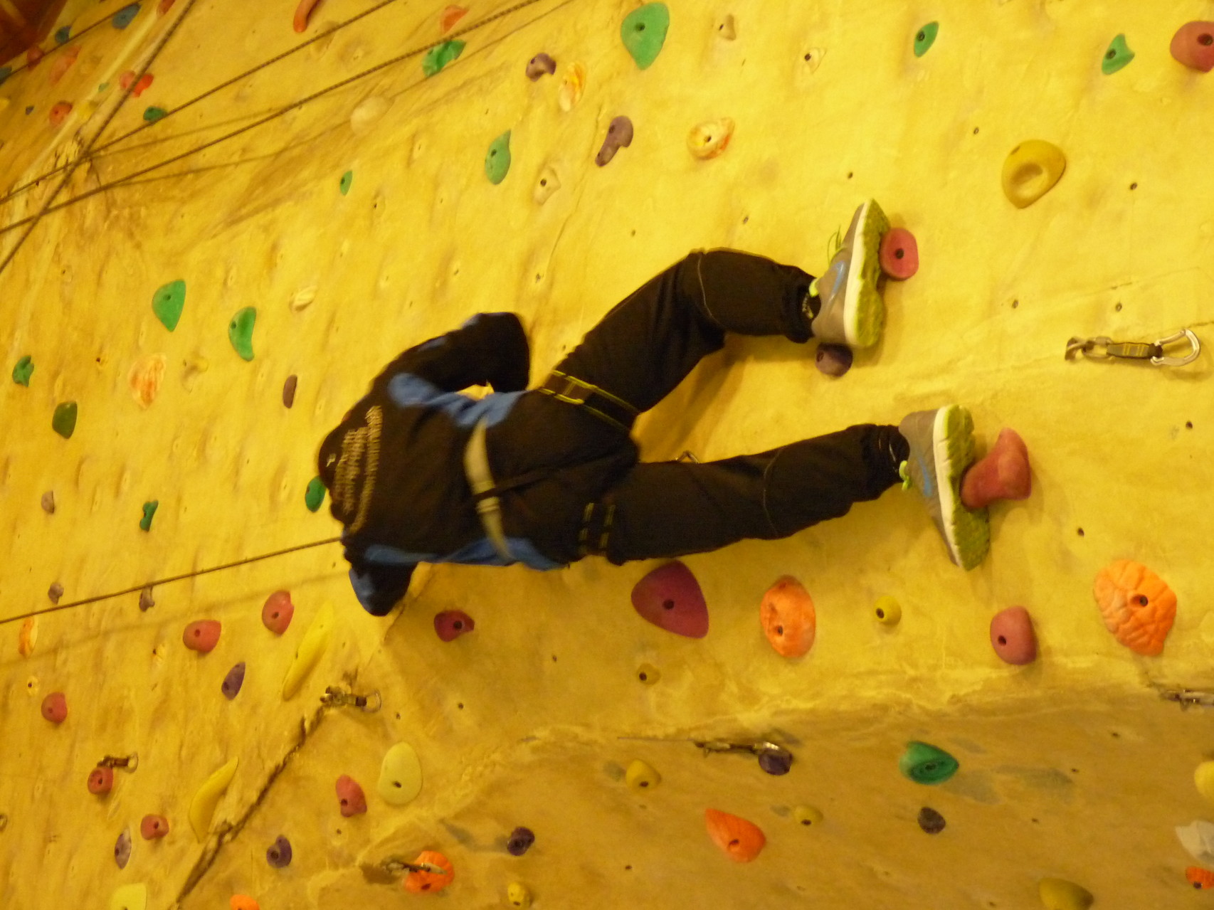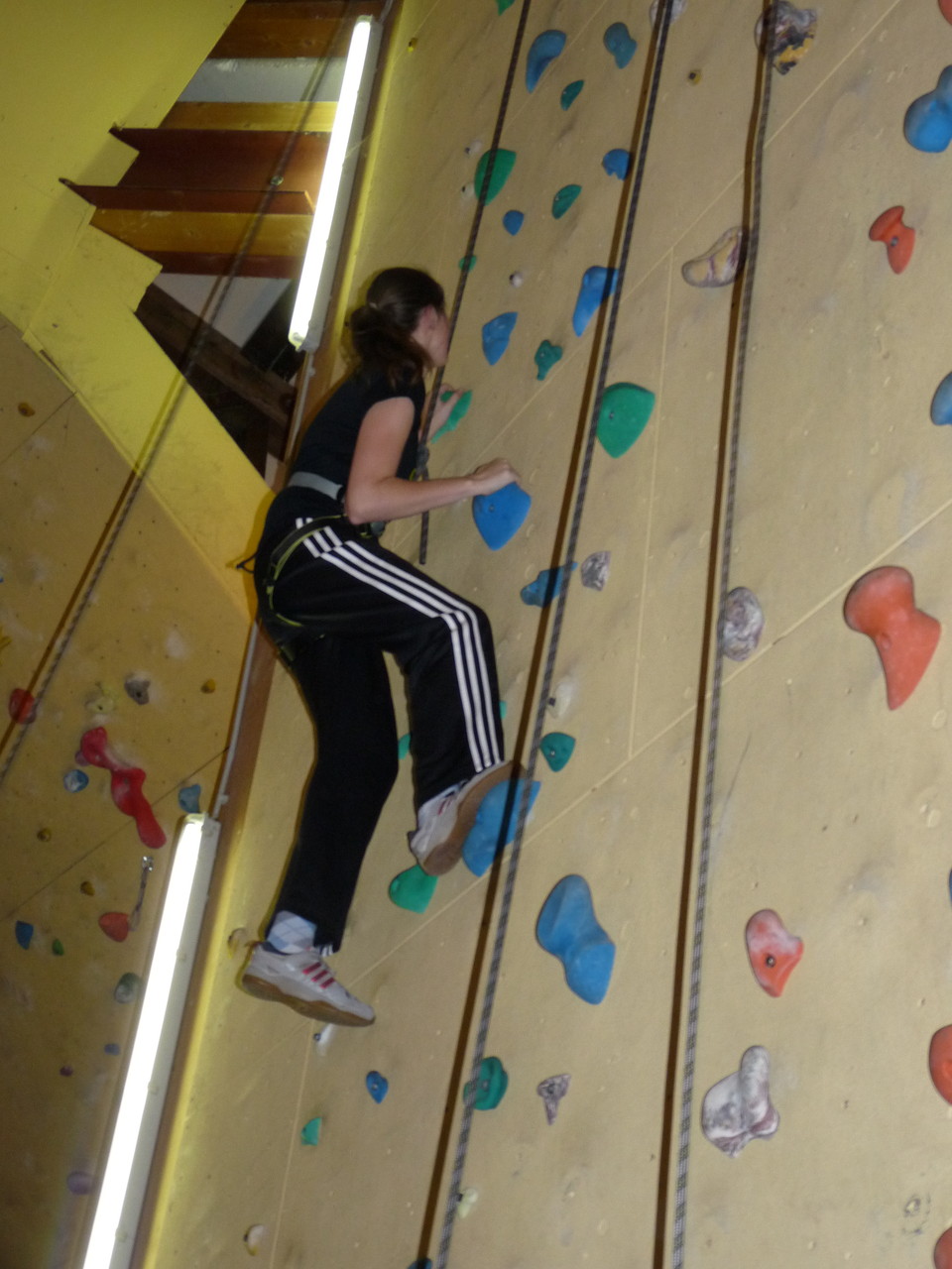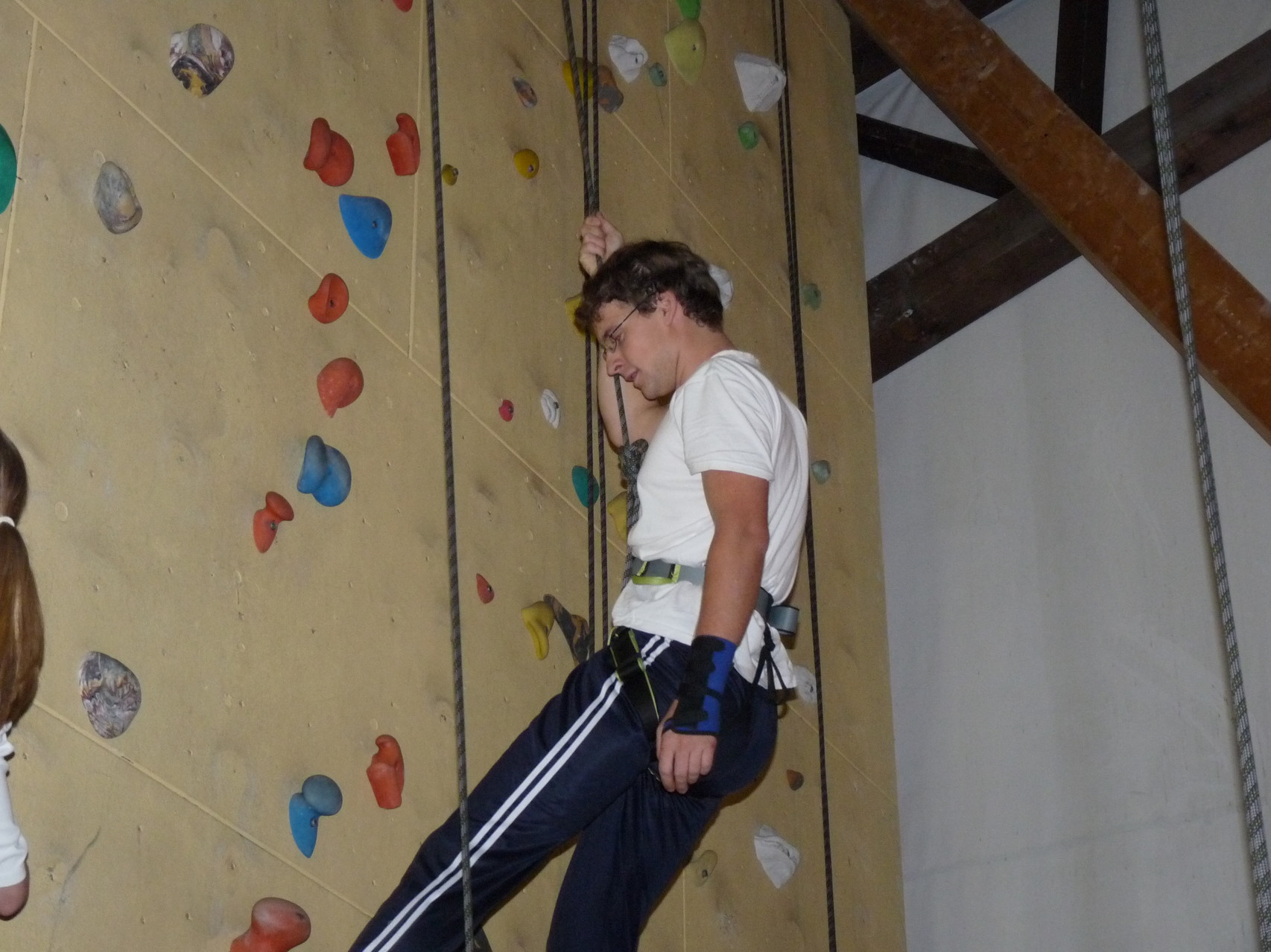 Nach dem Mittagessen fuhren sie zur Kletterhalle. Somit hatten sie trotz Regen keine Einschränkungen. Nach einer kurzen Einweisung in die Kletterausrüstung konnten die ersten schon damit anfangen den „Gipfel“ zu erklimmen. Damit es niemanden langweilig wurde, gab es unterschiedliche Schwierigkeitsgrade. Gegen spätem Nachmittag verließ die Jugend die Halle und fuhr zurück zum Flugplatz. Ein wenig später trafen auch die Pizzen ein. Den Abend ließen sie dann gemütlich im Jugendraum ausklingen. Ein durchaus gelungener Tag!