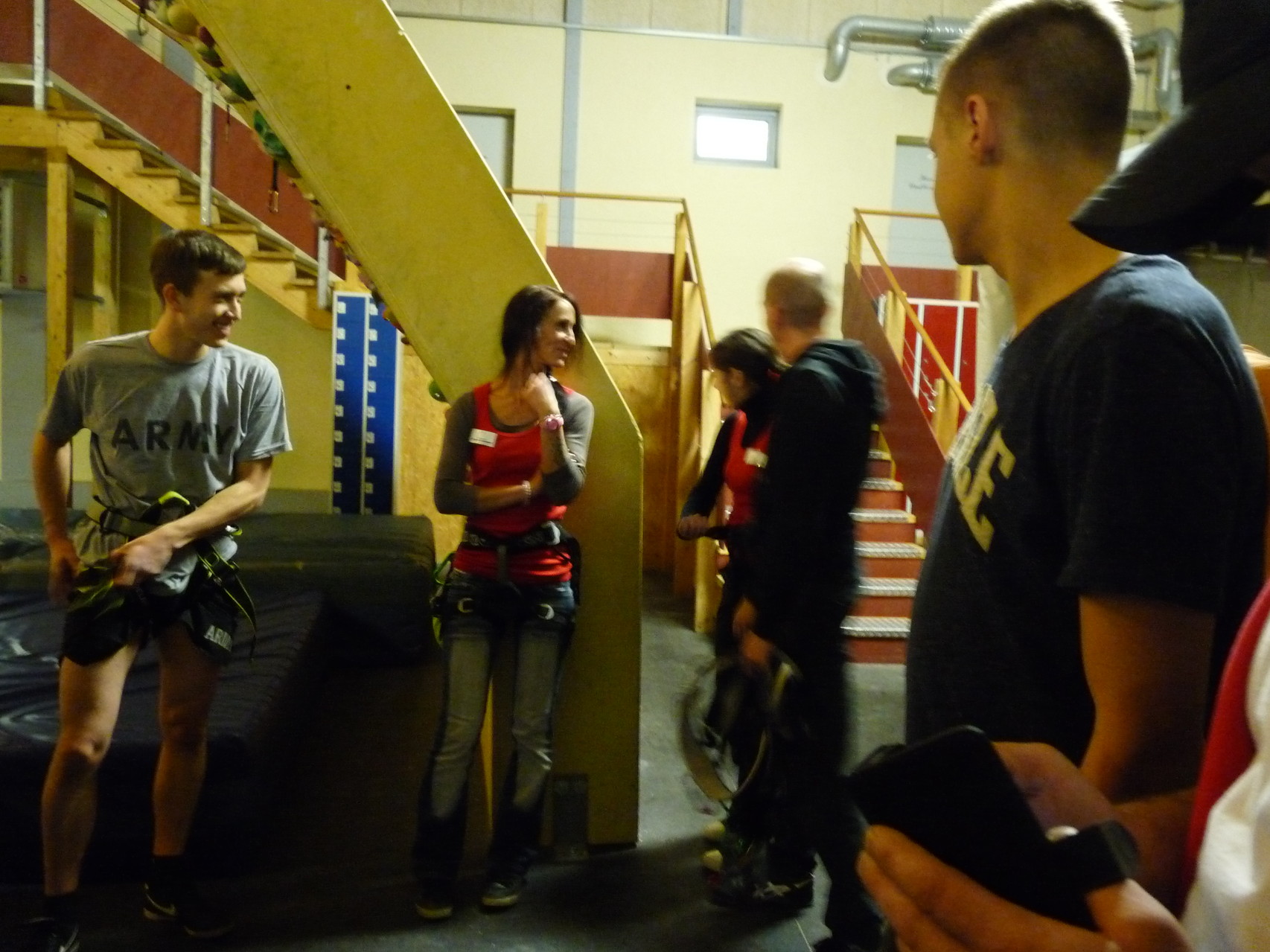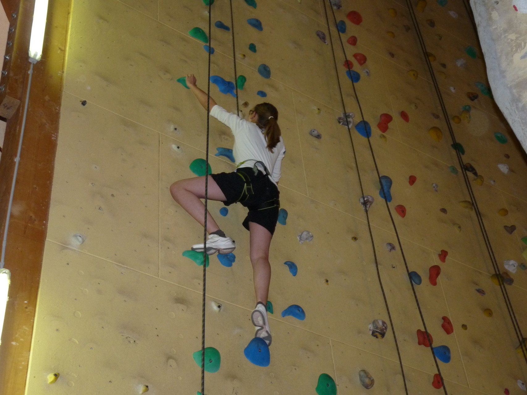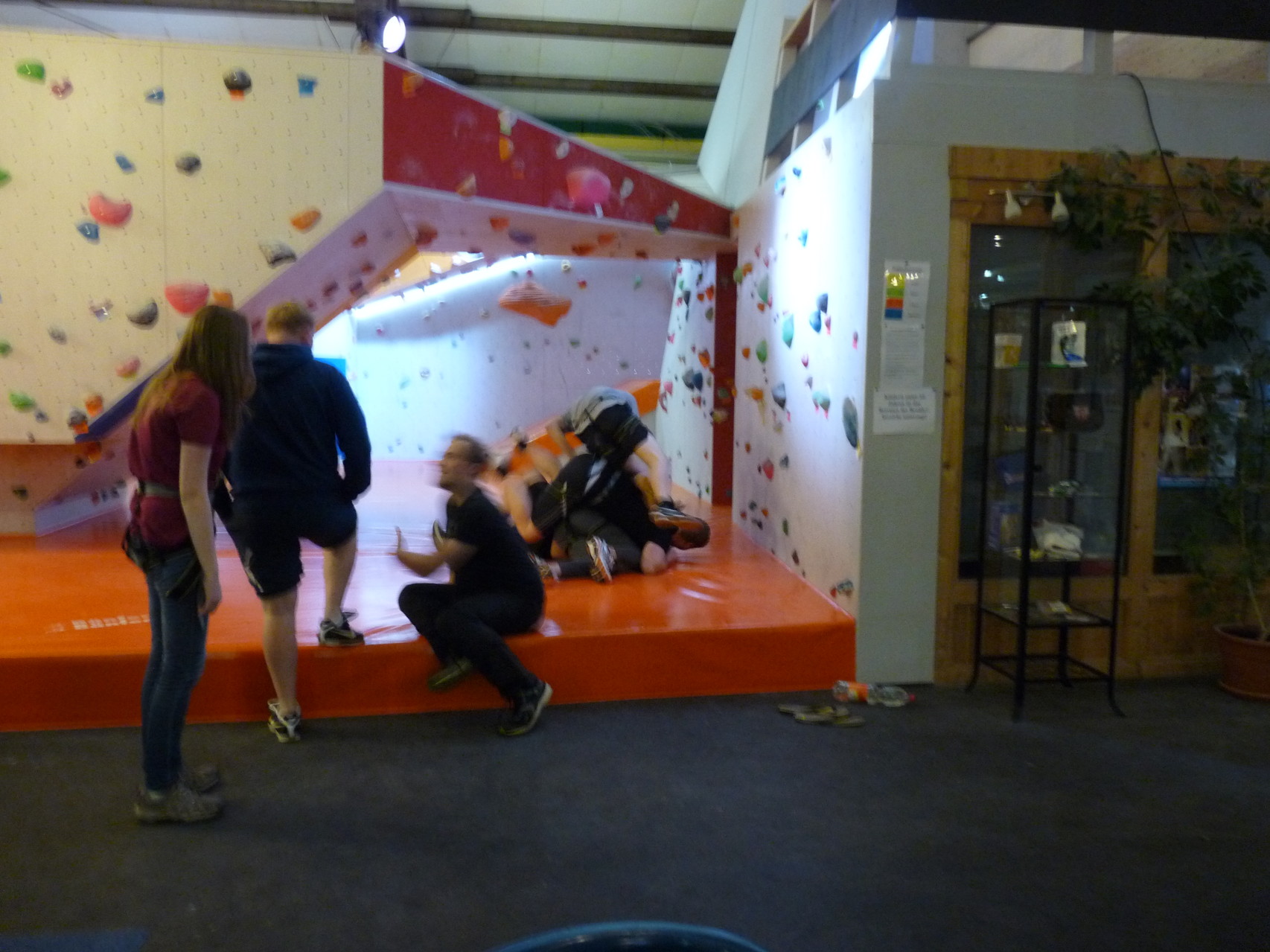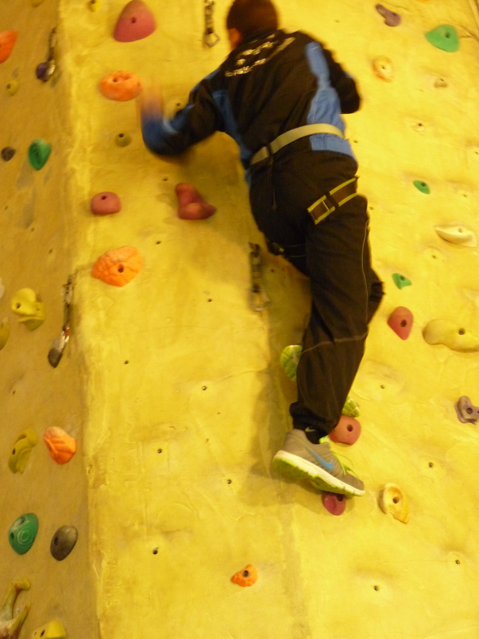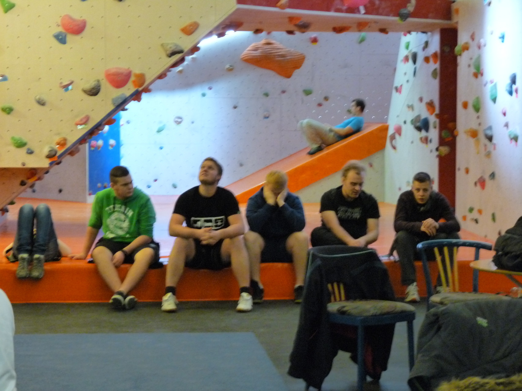 Nach dem Mittagessen fuhren sie zur Kletterhalle. Somit hatten sie trotz Regen keine Einschränkungen. Nach einer kurzen Einweisung in die Kletterausrüstung konnten die ersten schon damit anfangen den „Gipfel“ zu erklimmen. Damit es niemanden langweilig wurde, gab es unterschiedliche Schwierigkeitsgrade. Gegen spätem Nachmittag verließ die Jugend die Halle und fuhr zurück zum Flugplatz. Ein wenig später trafen auch die Pizzen ein. Den Abend ließen sie dann gemütlich im Jugendraum ausklingen. Ein durchaus gelungener Tag!