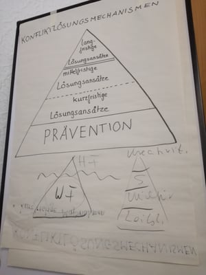 Im Laufe des Tages gab es viele verschiedene Aufgaben welche wir in kleinen Gruppen bearbeiten konnten. Diese wurden teils als Vortrag präsentiert und teils auch in kleineren Rollenspielen, welche uns allen eine Lockere Atmosphäre zum Lernen von Techniken zur Bewältigung von Konflikten innerhalb der Vereine, aber auch bezogen auf Konflikte im Privaten, boten.